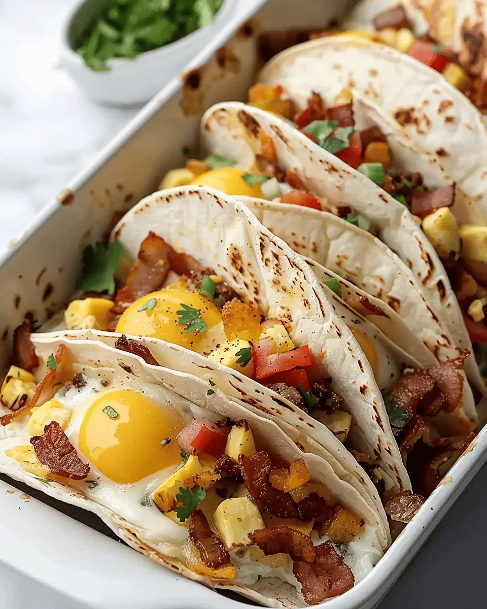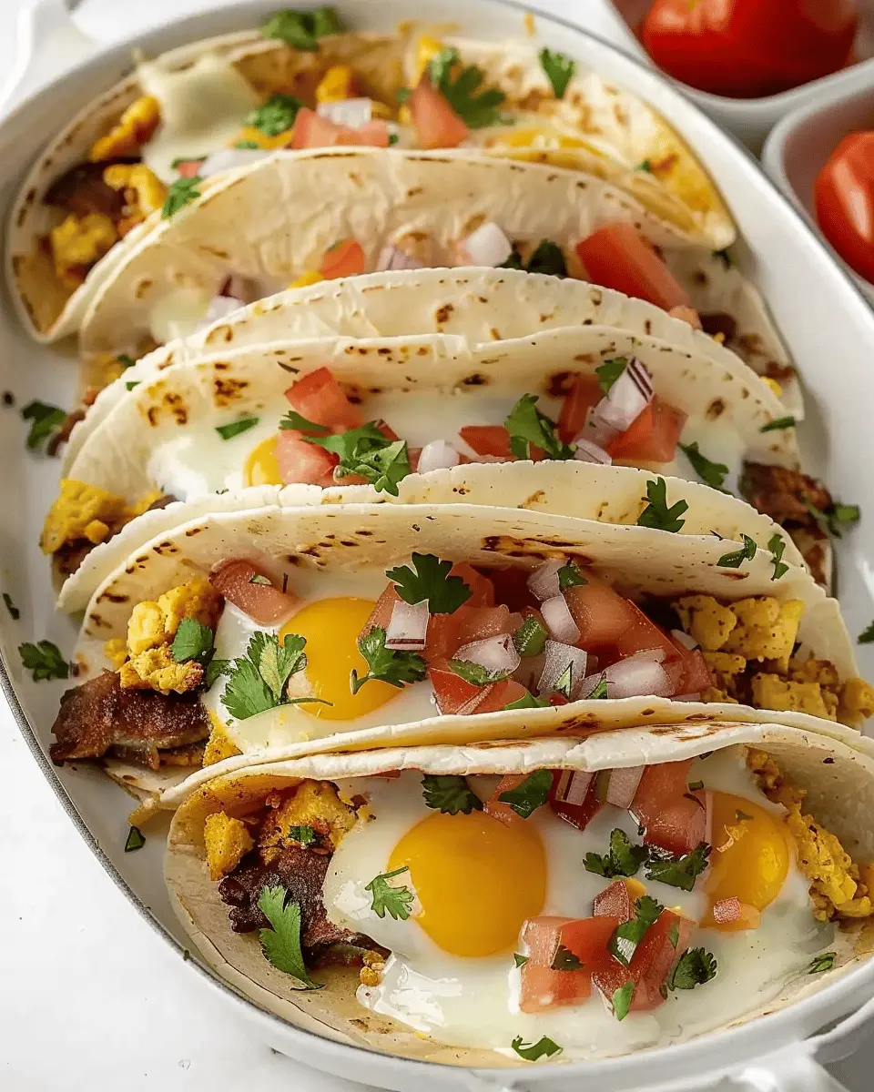 Presentation is key when serving up your breakfast ideas. Try arranging the tacos on a colorful platter or a wooden board for a rustic touch. Garnish with freshly chopped cilantro or a sprinkle of lime zest. Using small bowls for optional toppings like salsa, Greek yogurt, or jalapeños invites guests to customize their tacos.