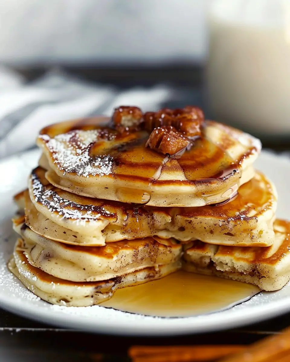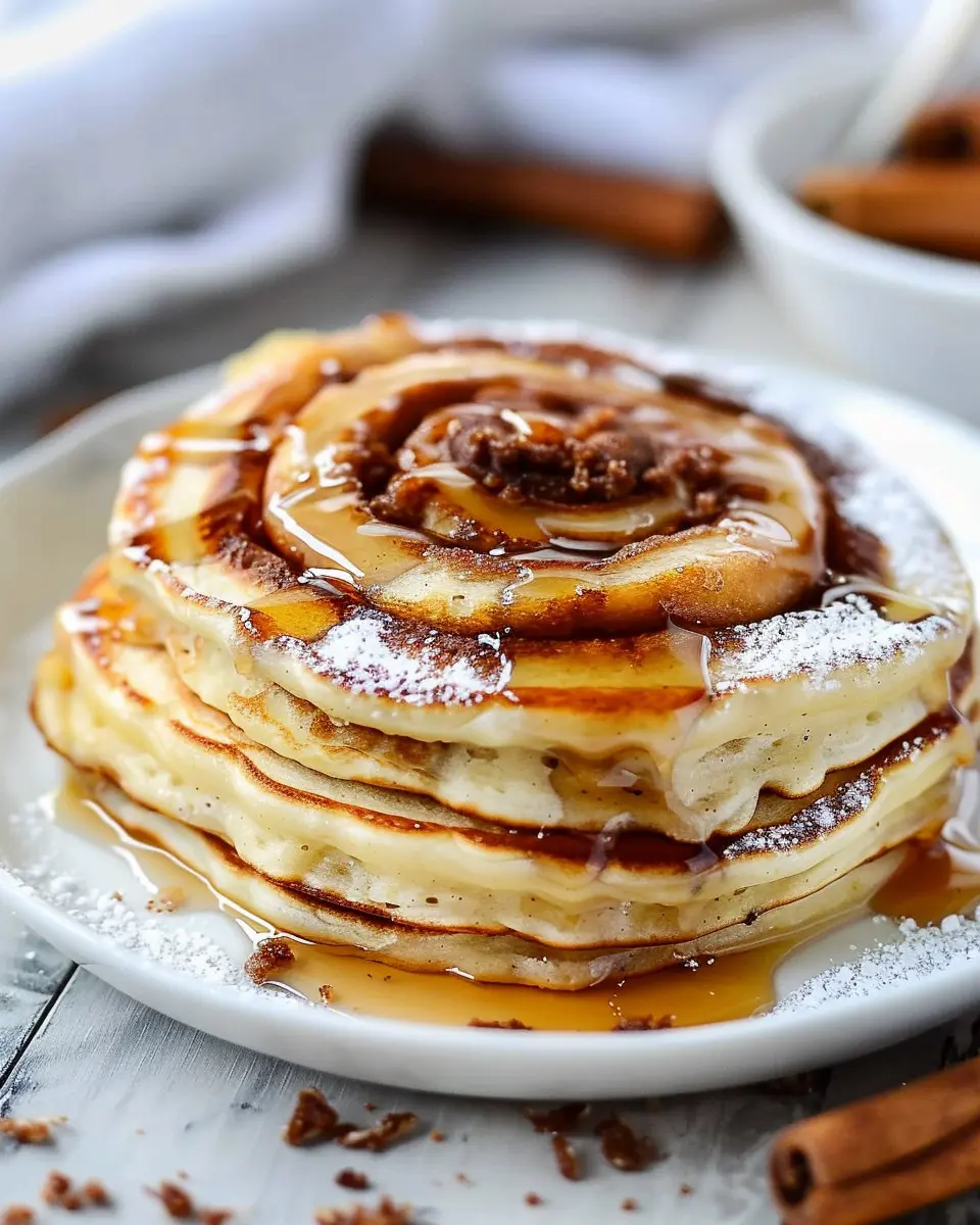 Creating an inviting presentation can elevate your cinnamon roll pancakes from delicious to visually stunning. Use a large, white plate to highlight the warm golden-brown pancakes. Stack them high for a cozy look, and drizzle maple syrup or homemade cream cheese frosting artistically over the top. Consider adding a sprinkle of cinnamon or powdered sugar for a finishing touch. Garnish with sliced strawberries or a few blueberries to add a pop of color and freshness.