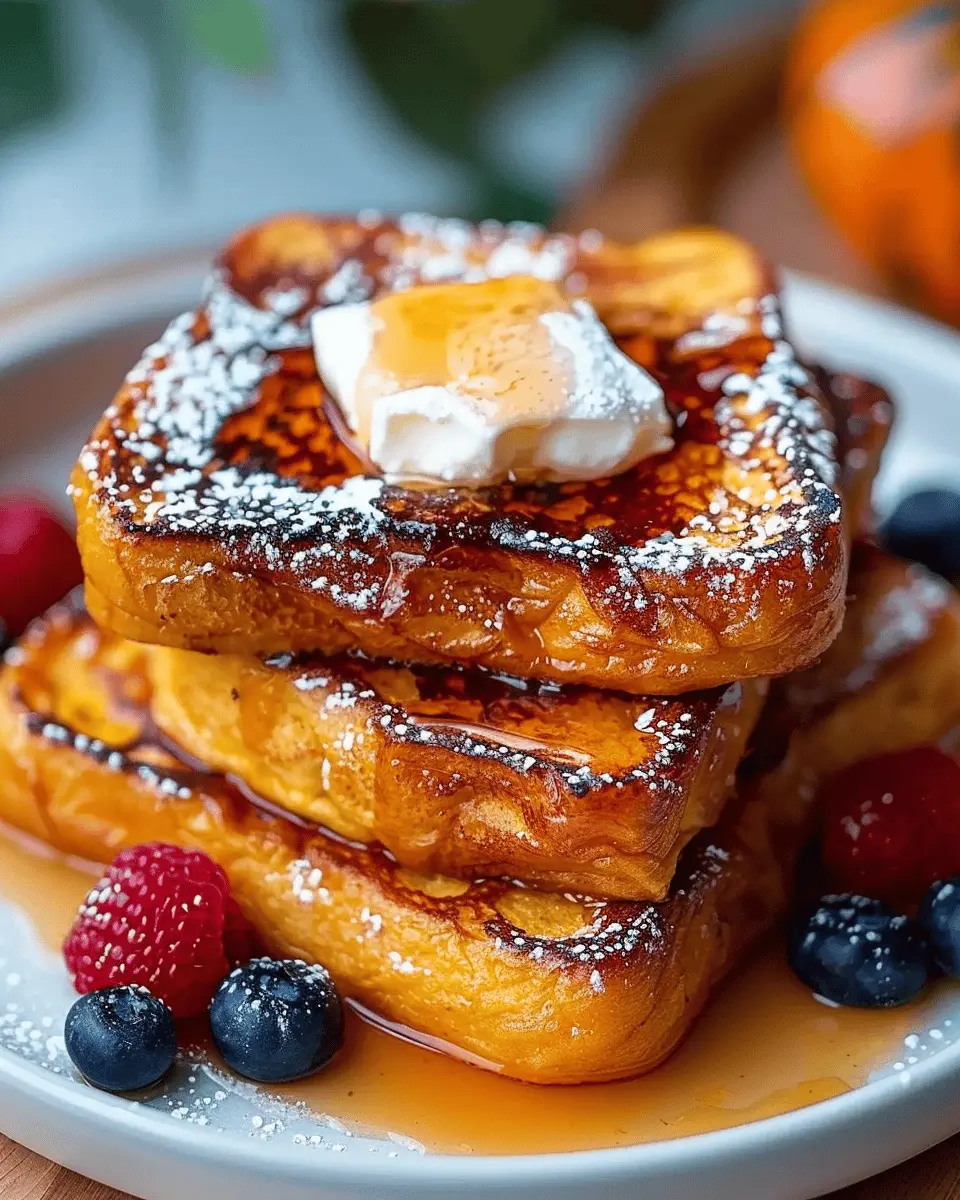 Keywords: breakfast ideas, pumpkin french toast, fall recipes, indulgent breakfast