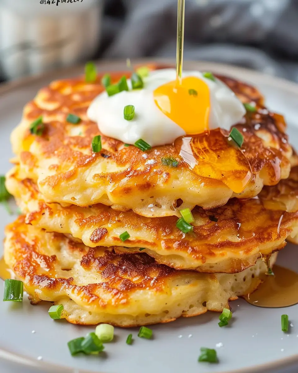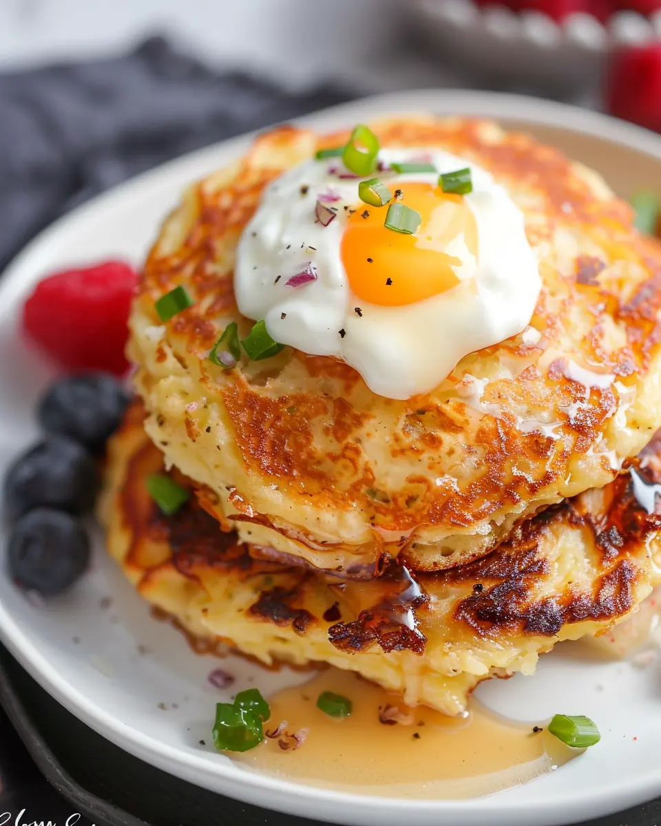 If you’re feeling adventurous, serve these pancakes with something special—like turkey bacon or chicken ham on the side, or with a dollop of sour cream and a sprinkle of chives for added flavor.