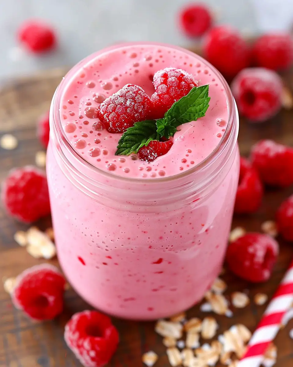 Let’s turn your raspberry smoothie into a feast for the eyes! Start by choosing a tall glass, which beautifully showcases the smoothie’s vibrant color. You can add a handful of fresh raspberries on top for garnish, or drizzle a bit of honey along the glass before pouring the smoothie in — it creates an eye-catching effect! A sprig of mint can also elevate the presentation, adding a pop of color and a hint of freshness. To make it more exciting, consider serving it in a mason jar or even a fun smoothie bowl, topped with seeds, nuts, or coconut flakes.