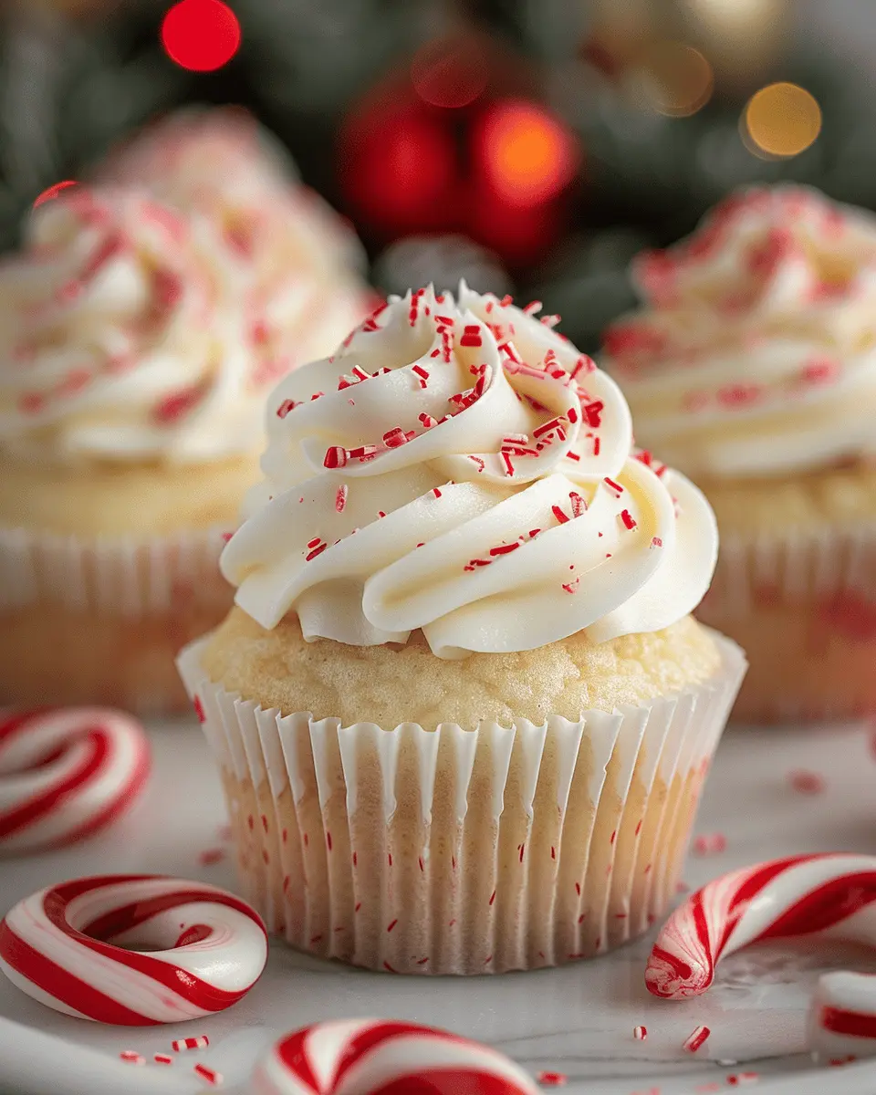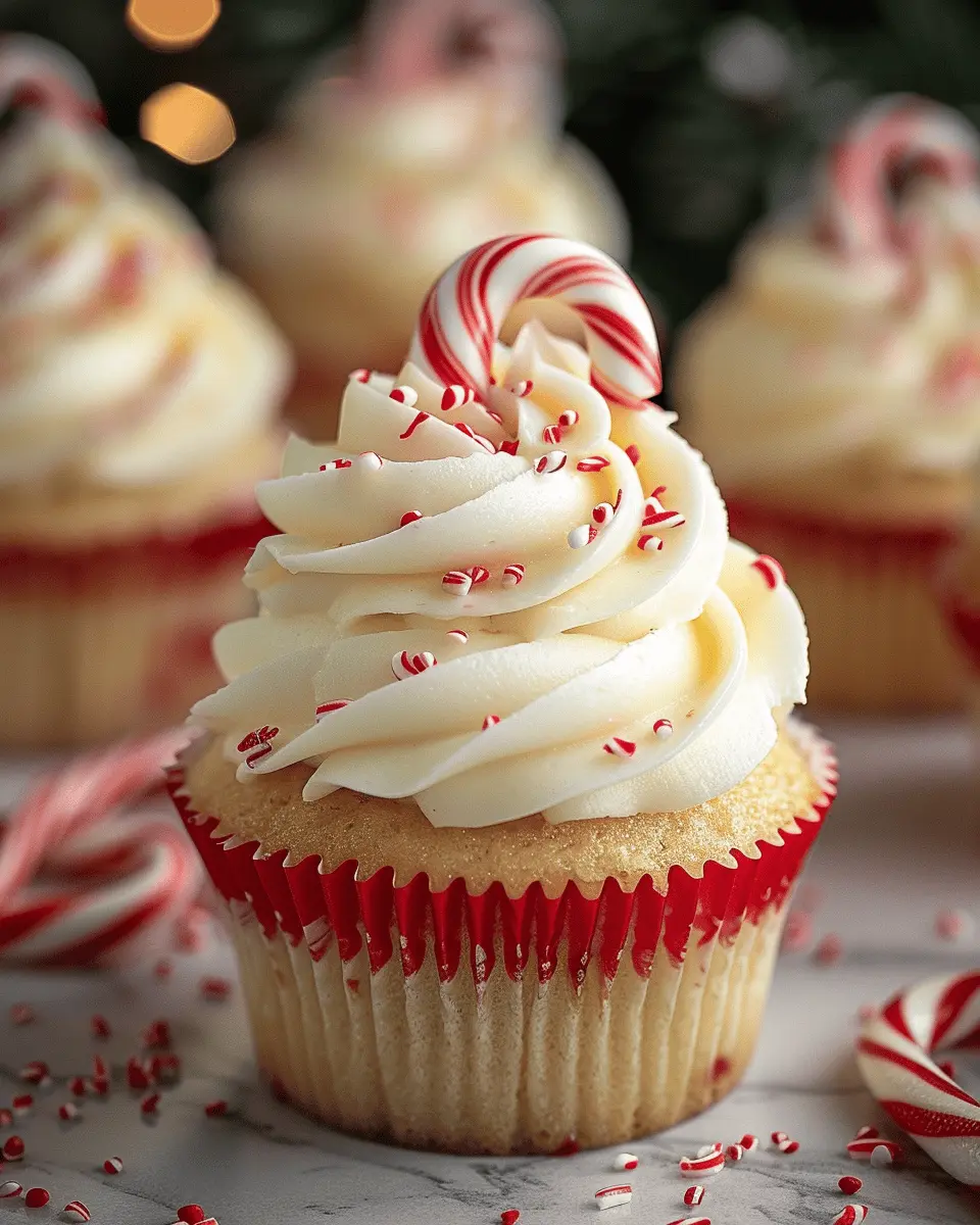 The base of the cupcakes is moist and fluffy, often flavored with peppermint or vanilla to highlight those nostalgic holiday flavors that we associate with winter festivities. Once baked, they are typically topped with a rich, creamy frosting that may be swirled with crushed candy canes for a delightful crunch. The added decorative touch of a whole candy cane or some fun sprinkles makes them irresistibly appealing to the eyes, and trust me, they taste just as good as they look!