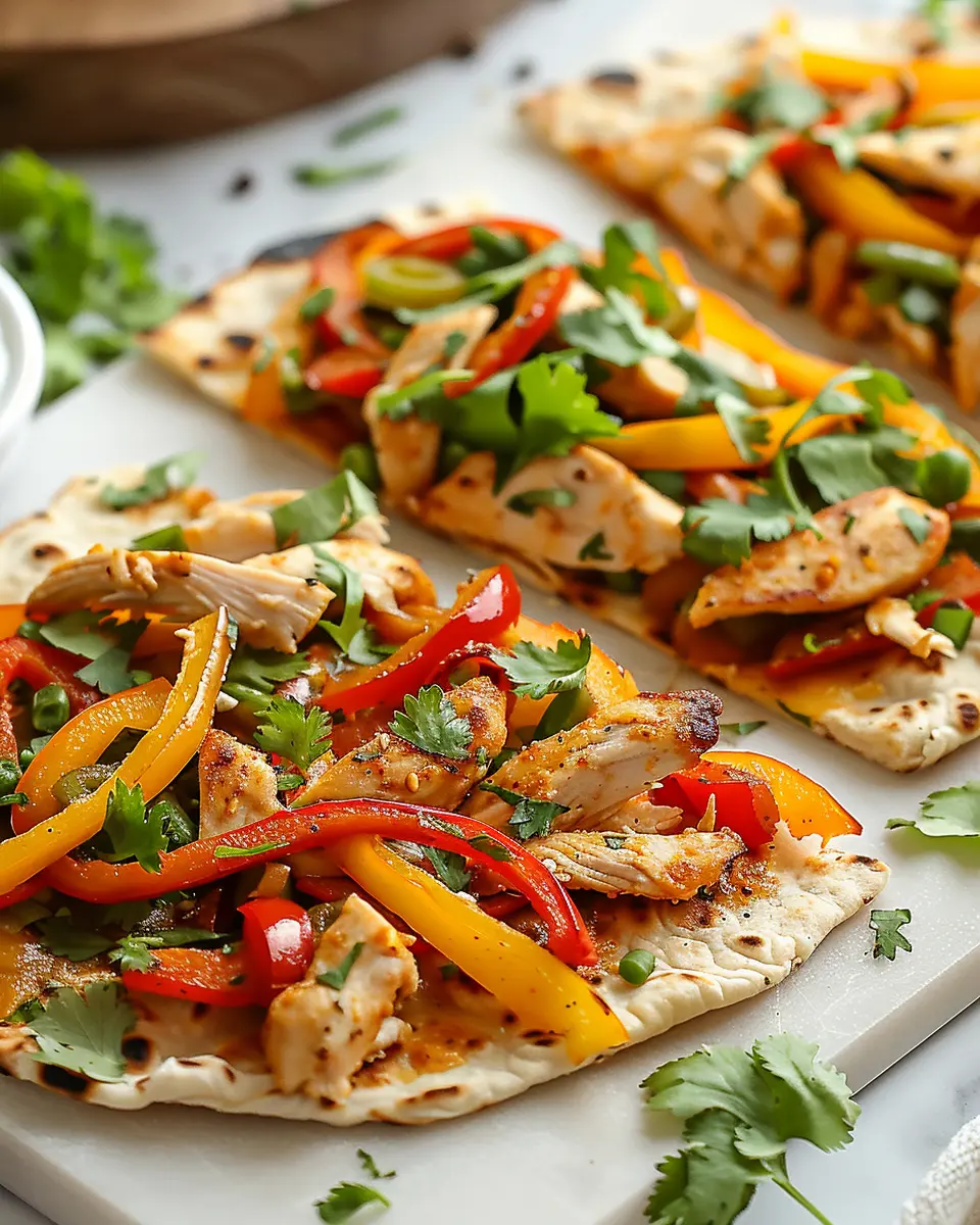 In just a short time, you can whip up this delightful dish that combines tender chicken, vibrant peppers, and comforting flatbread. Imagine enjoying a hearty meal with friends, sparking conversations about your favorite toppings or even sharing tips on meal prep. For more inspiration, consider browsing sites like Taste of Home or Bon Appétit for ideas. Happy cooking!