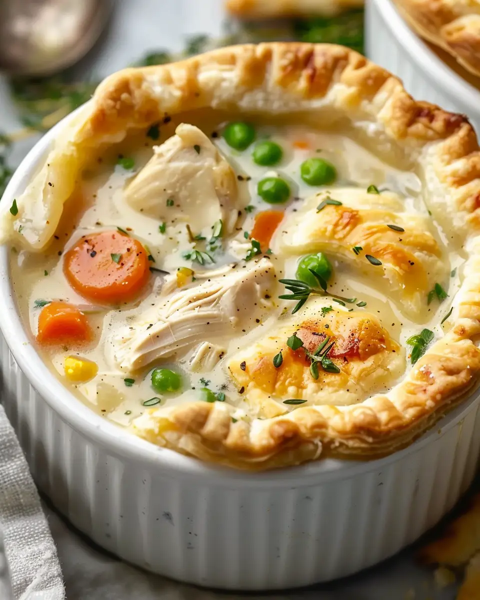 - Vegetables: Carrots, peas, and celery add the classic pot pie flavor.