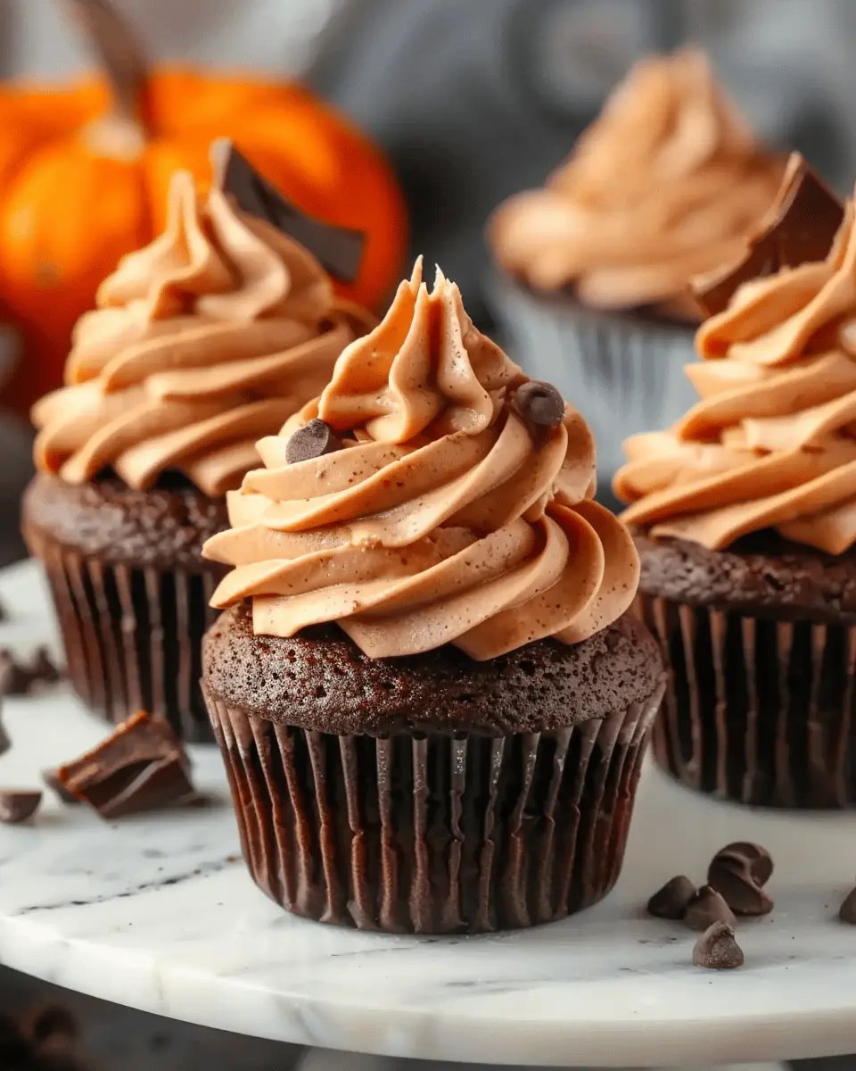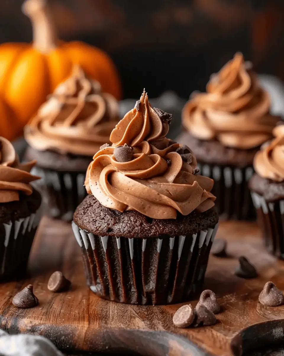 Keywords: Chocolate Pumpkin Cupcakes, Fall Dessert, Indulgent Treat