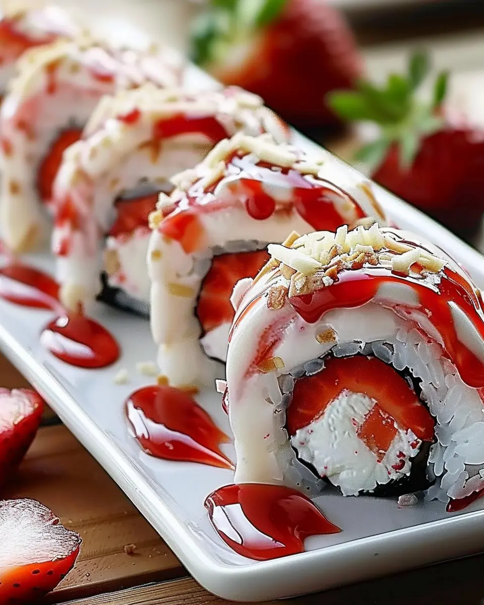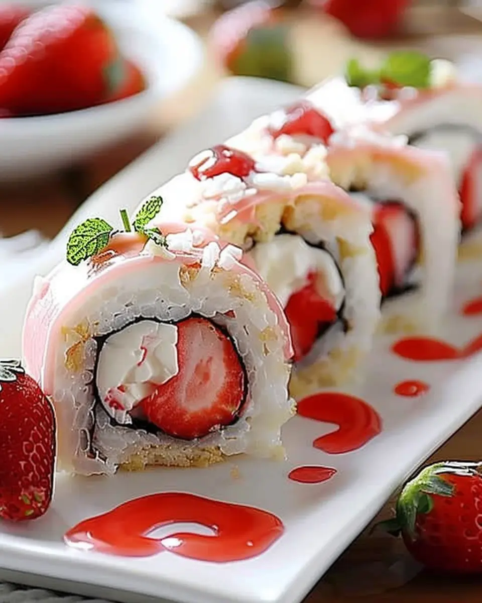 The combination of strawberries and whipped cream will elevate your sushi roll to the next level.
