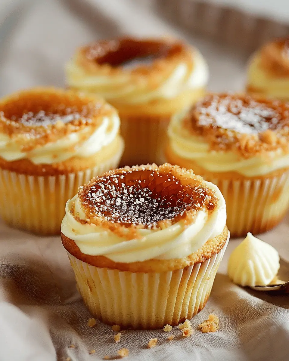 Delight in these rich and creamy Crème Brûlée Cupcakes, perfect for adding a touch of elegance to any occasion.