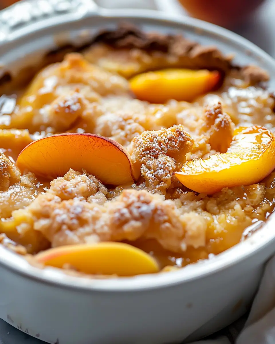 Versatile Ingredients: Whether you have fresh peaches from the farmer’s market or canned peaches stashed in your pantry, this recipe adapts easily. This versatility is perfect for spontaneous cooking.