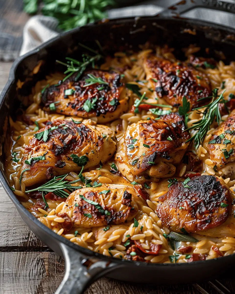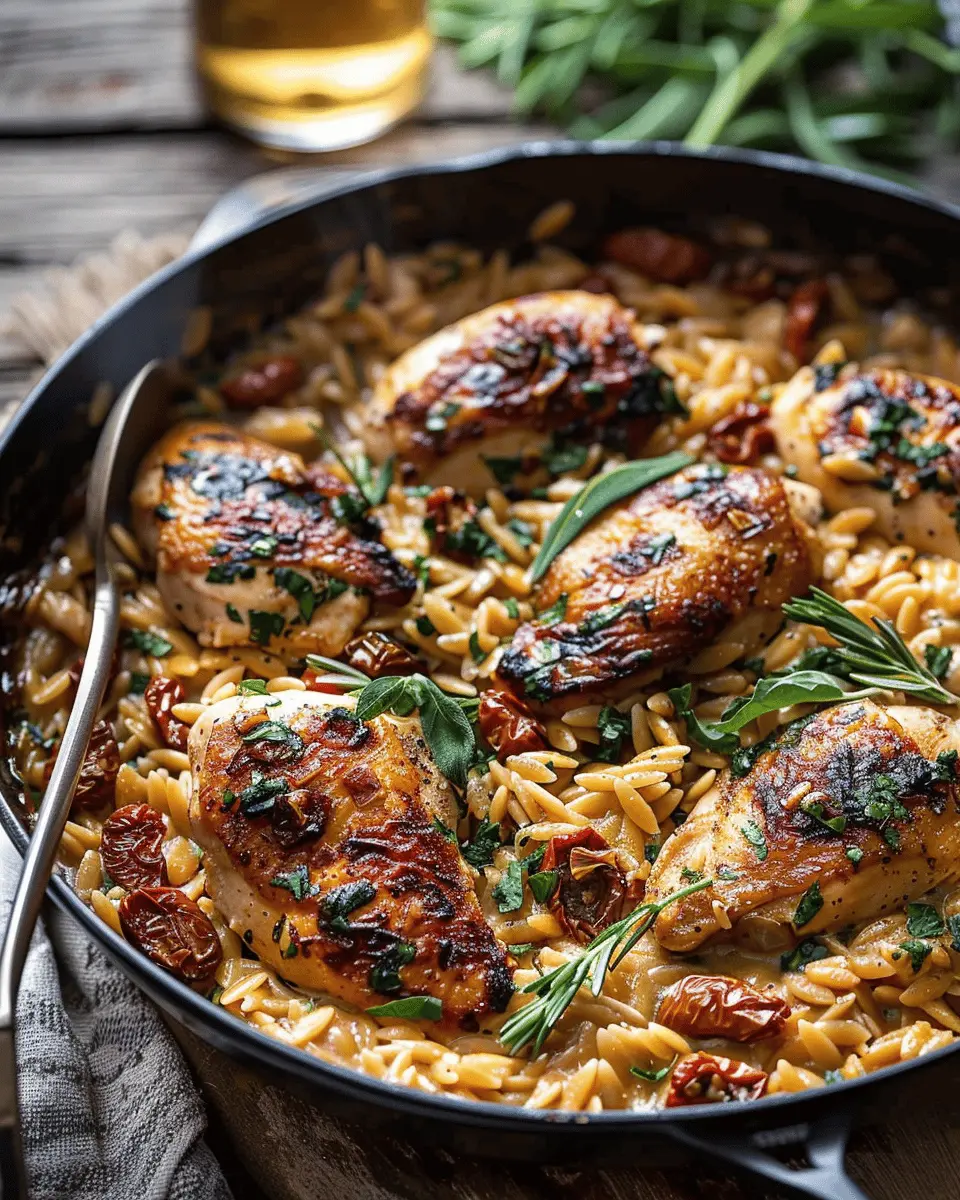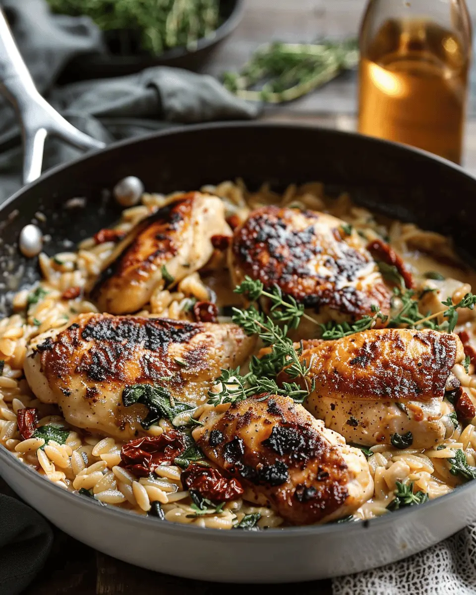 Keywords: Easy Cheap Dinner Ideas, One Skillet Creamy Sun-Dried Tomato Chicken and Orzo