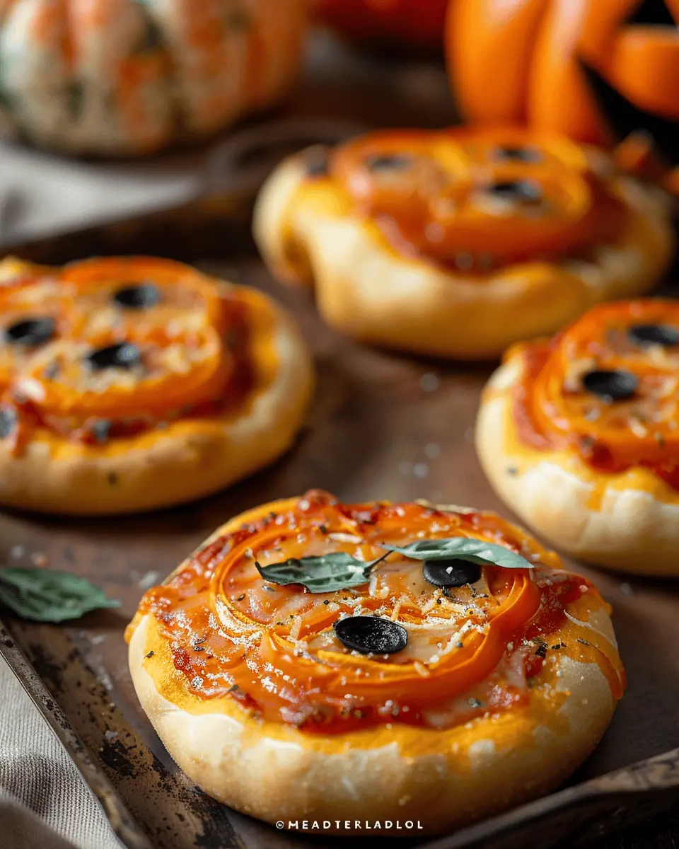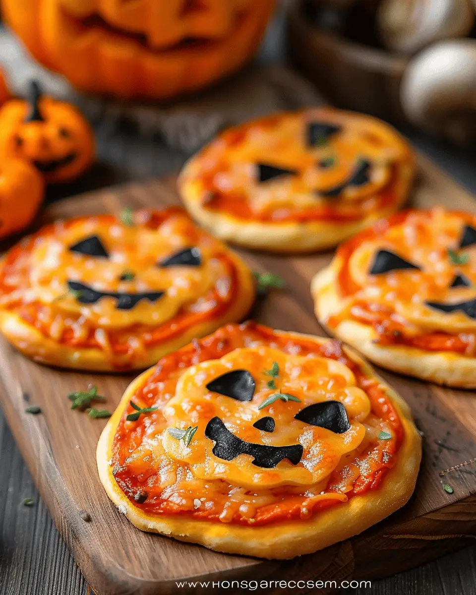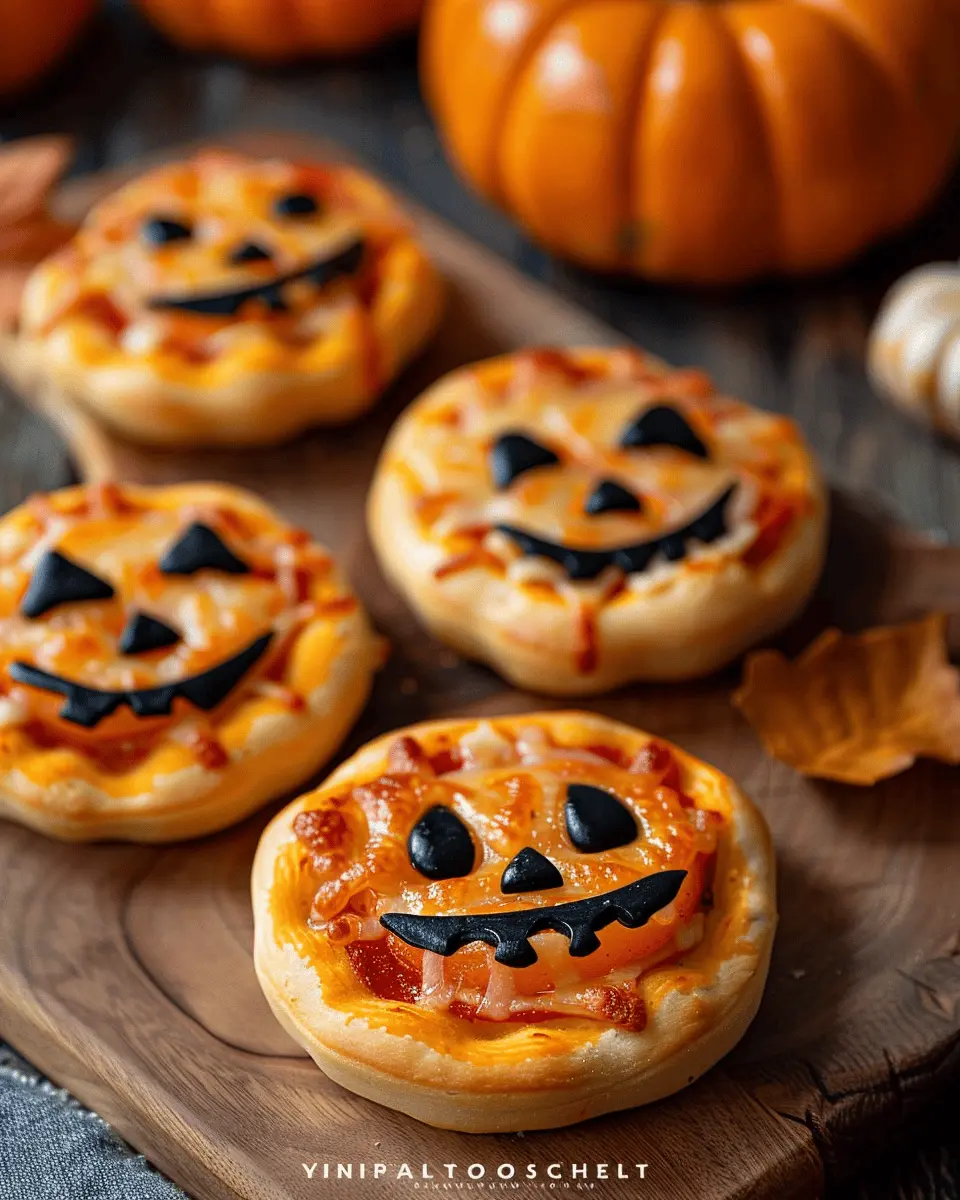 Get ready for Halloween with these adorable pumpkin-shaped mini pizzas that are both fun and delicious!