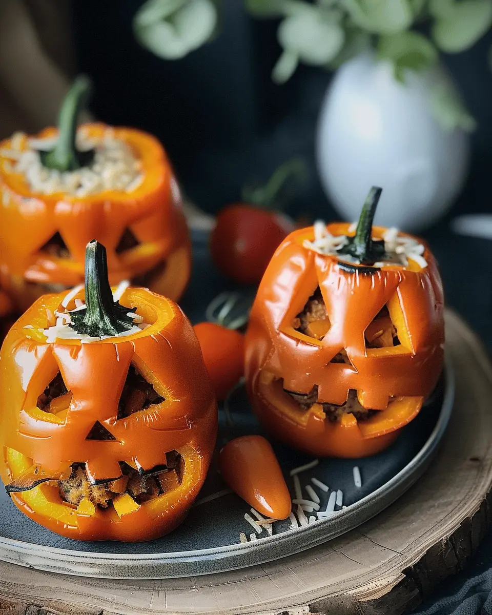 Keywords: Easy Halloween food ideas, Stuffed Bell Pepper Jack-o’-Lanterns, Halloween recipes