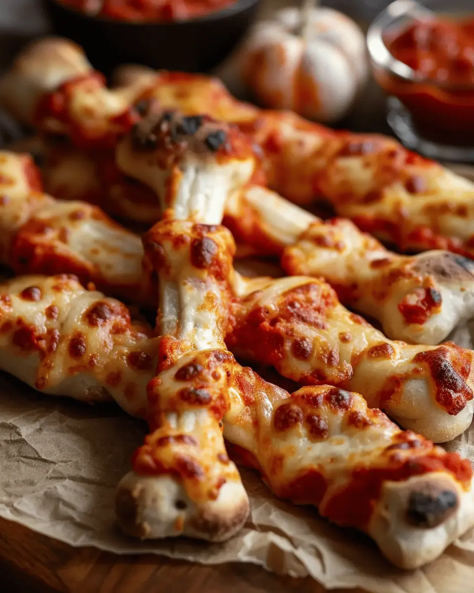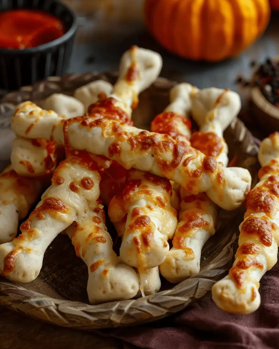 Indulge in these fun and delicious Cheesy Halloween Breadstick Bones that are perfect for any Halloween celebration.