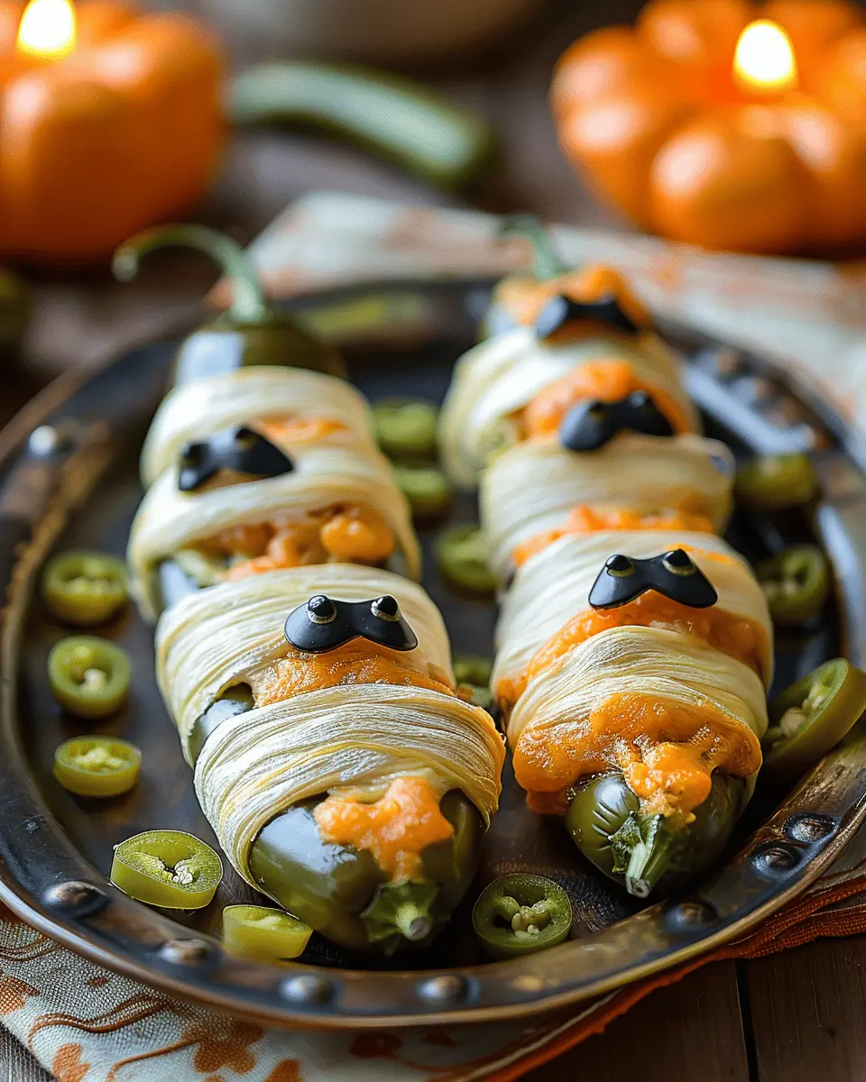 To really complement your Mummy Jalapeño Poppers, consider serving them alongside a fresh Halloween-themed salad, perhaps with roasted pumpkins and cranberries. For a dip option, a creamy avocado or zesty ranch dip works wonders. If you’re looking for a fun, non-alcoholic drink, try mixing up a vibrant citrus punch. This pairing will not only balance the spicy flavors but also create a delightful dining experience. Experiment with flavors and don’t forget to explore food pairing suggestions on sites like The Spruce Eats for more inspiration!