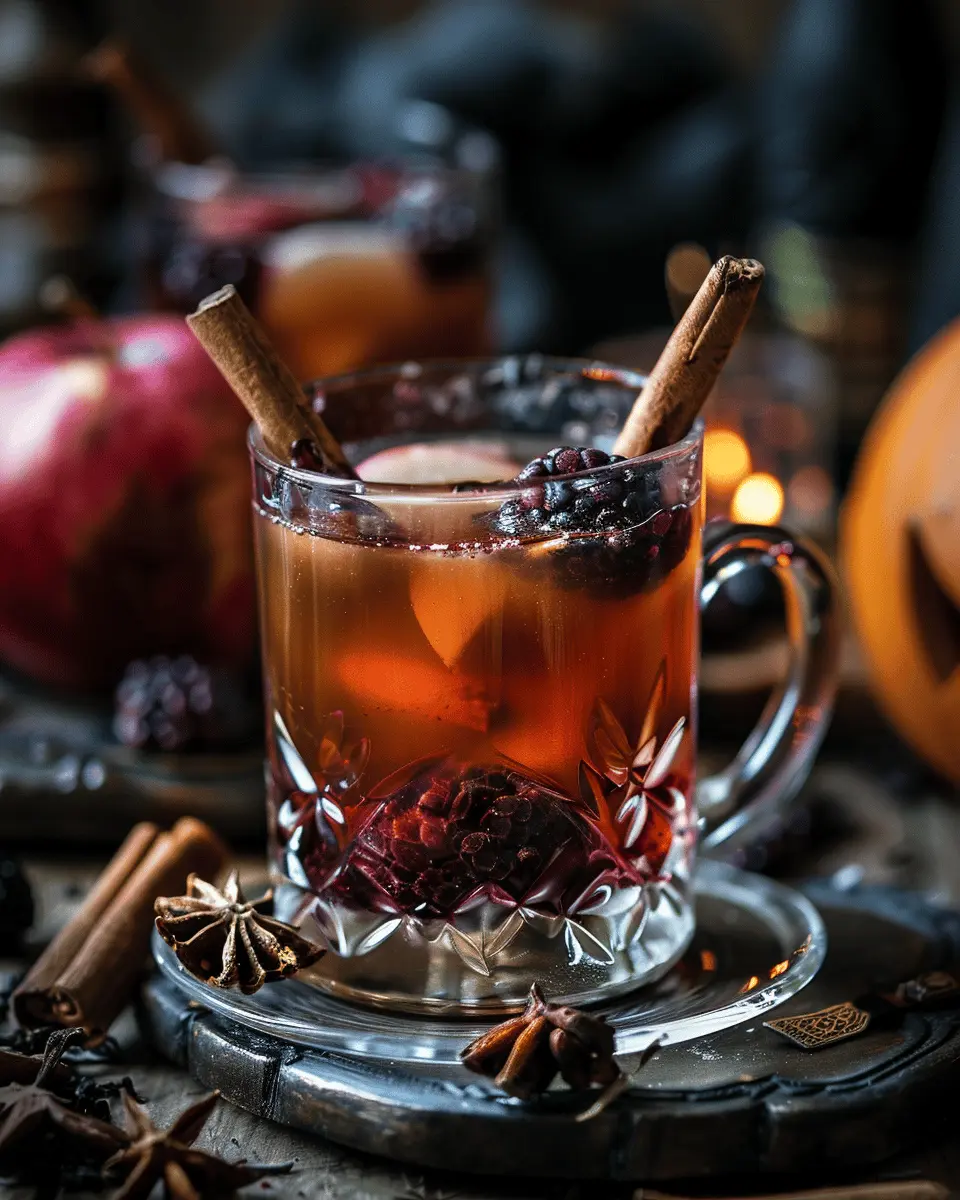 A delightful and spooky twist on traditional apple cider, perfect for Halloween parties.