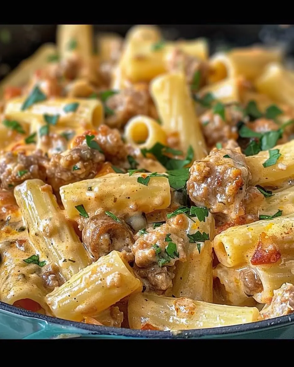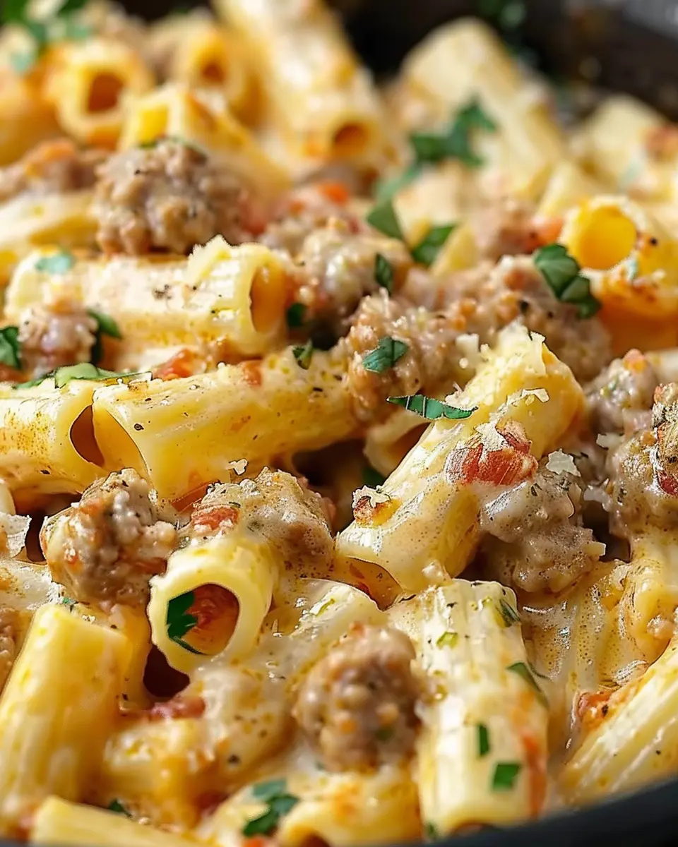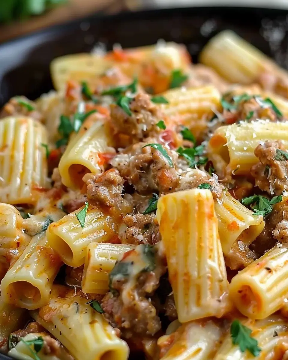A delicious and easy-to-make creamy rigatoni dish featuring Italian sausage, perfect for a comforting dinner.
