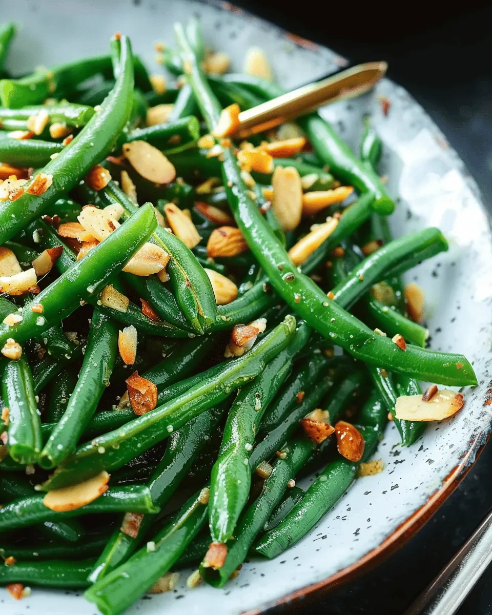 Serving Green Beans Almondine is all about aesthetics. A bright green hue against a simple white plate can transform your table setting. Pour the almond butter sauce artfully over the green beans for a fancy touch. Consider garnishing with toasted almonds or a sprinkle of fresh herbs to add texture and vibrancy.