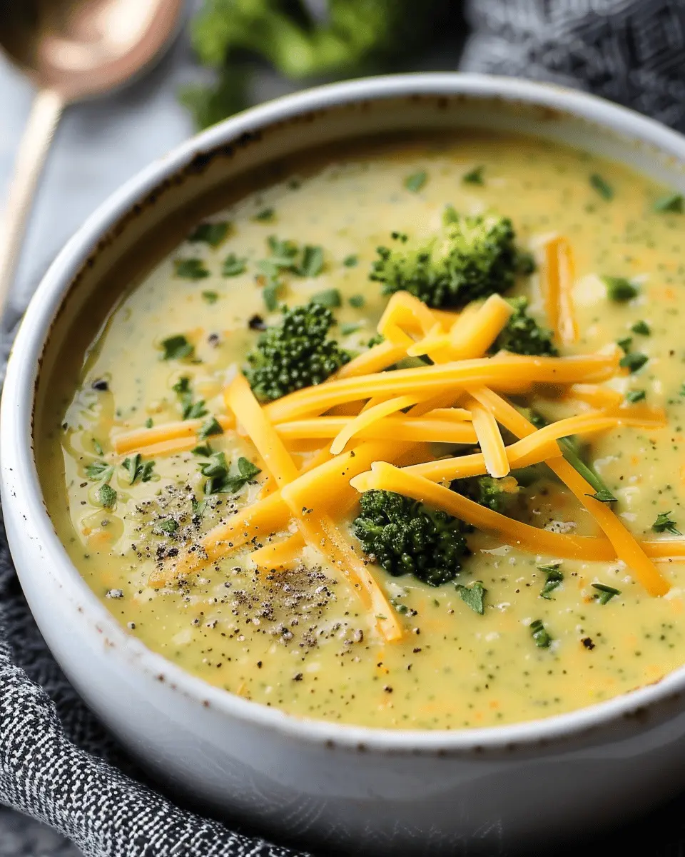 PrintEasy Soup Recipes: Comforting Broccoli Cheddar Soup with Turkey Bacon