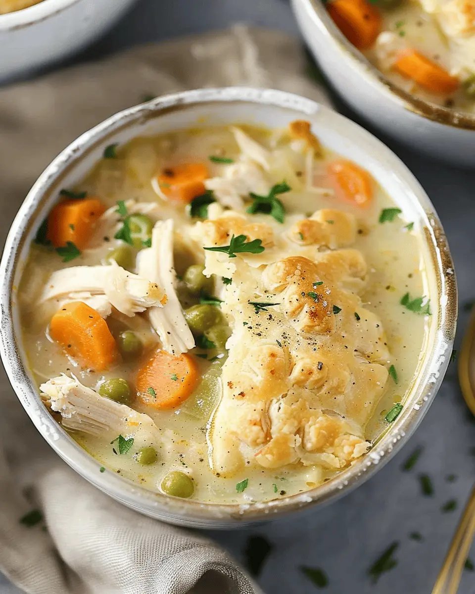easy soup recipes: Comforting Chicken Pot Pie Soup with Turkey Bacon