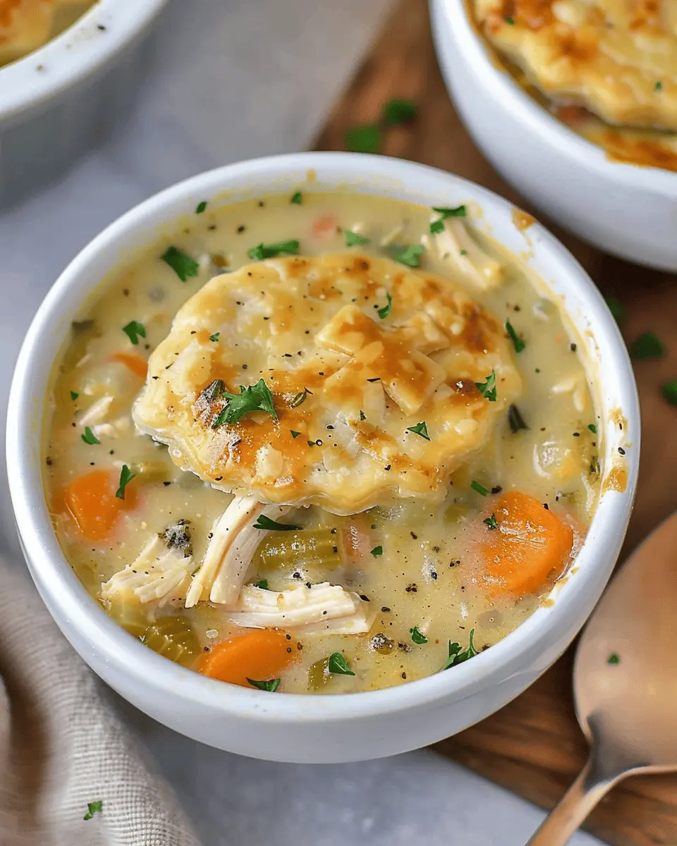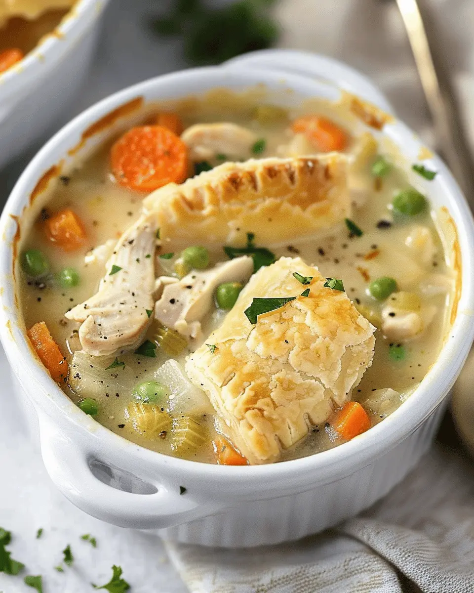 When enjoying your Chicken Pot Pie Soup, consider some tasty sides that complement its creamy goodness. Think about crusty bread or warm dinner rolls for that perfect dipping experience. A fresh garden salad with a light vinaigrette can also balance out the richness of the soup. Alternatively, serve it with some savory Turkey Bacon bites for an extra flavor kick.