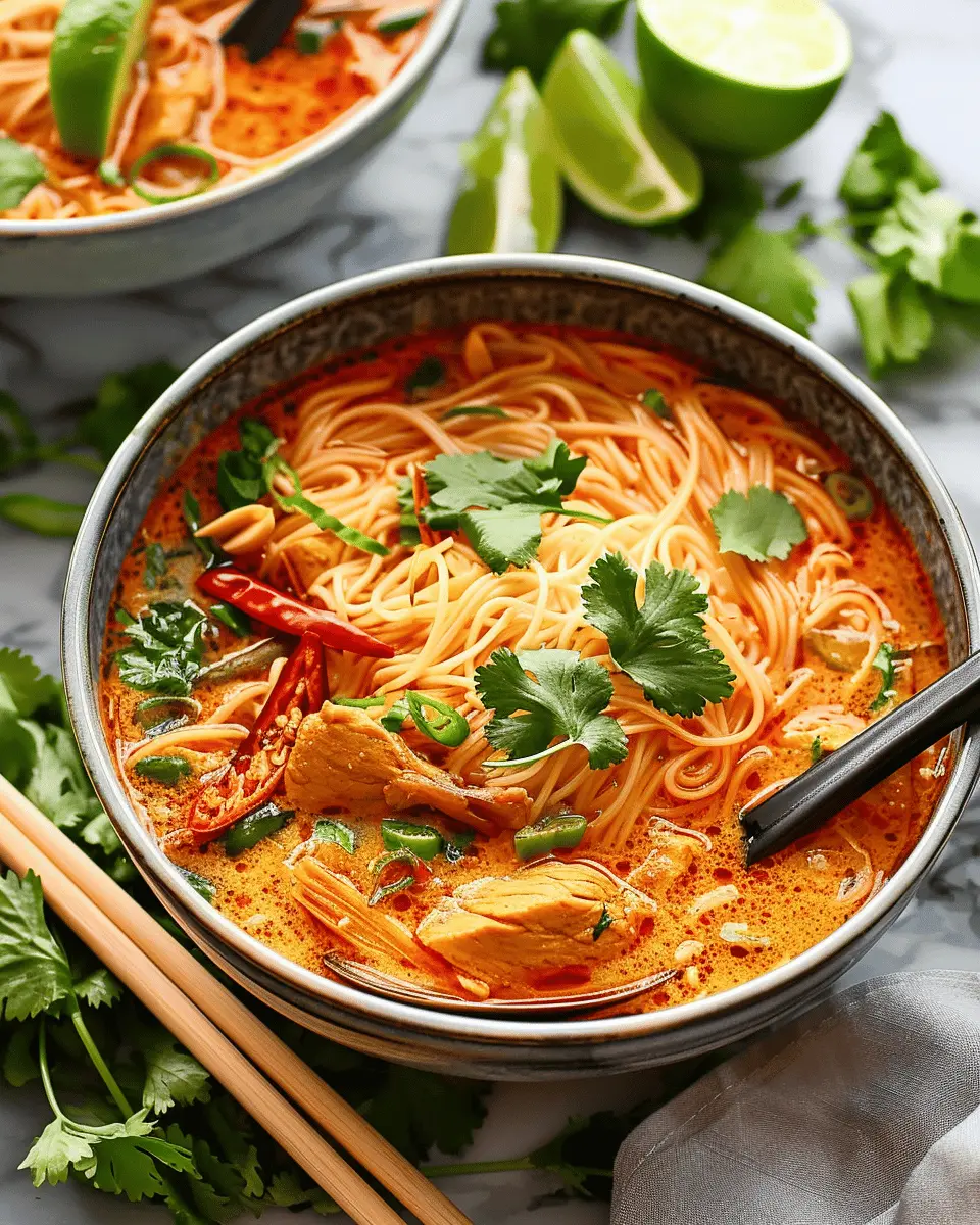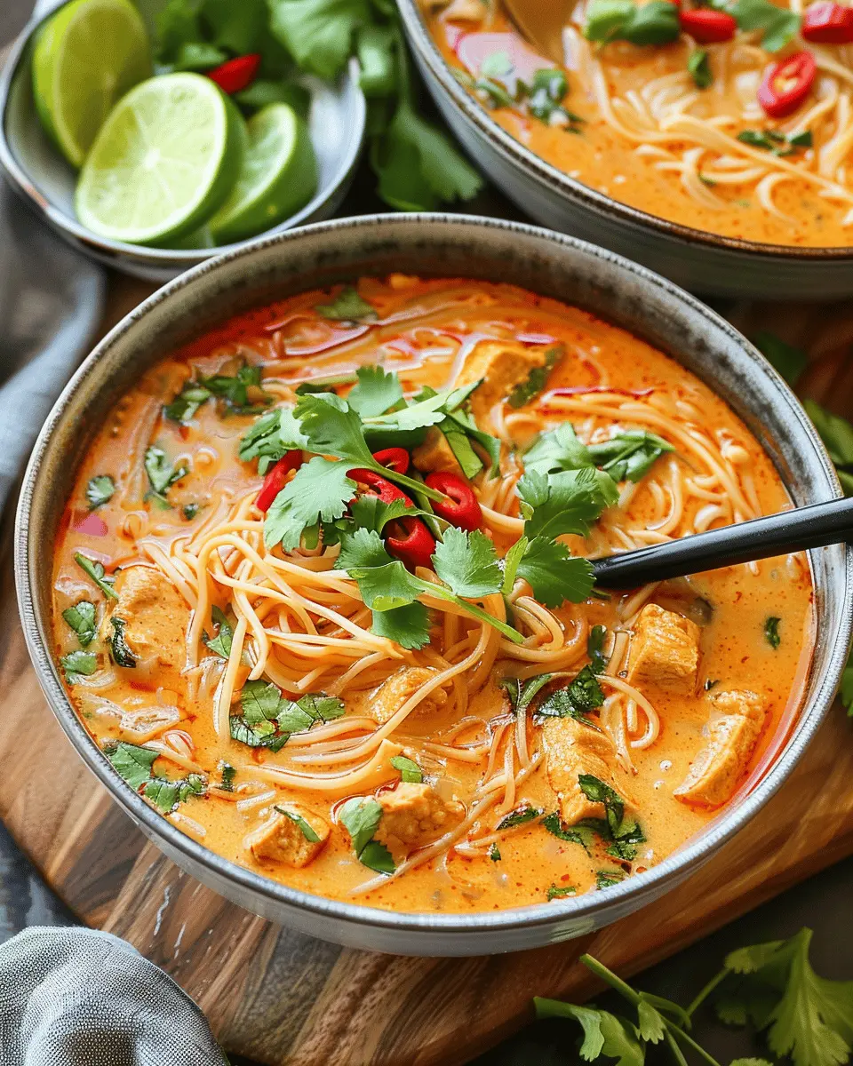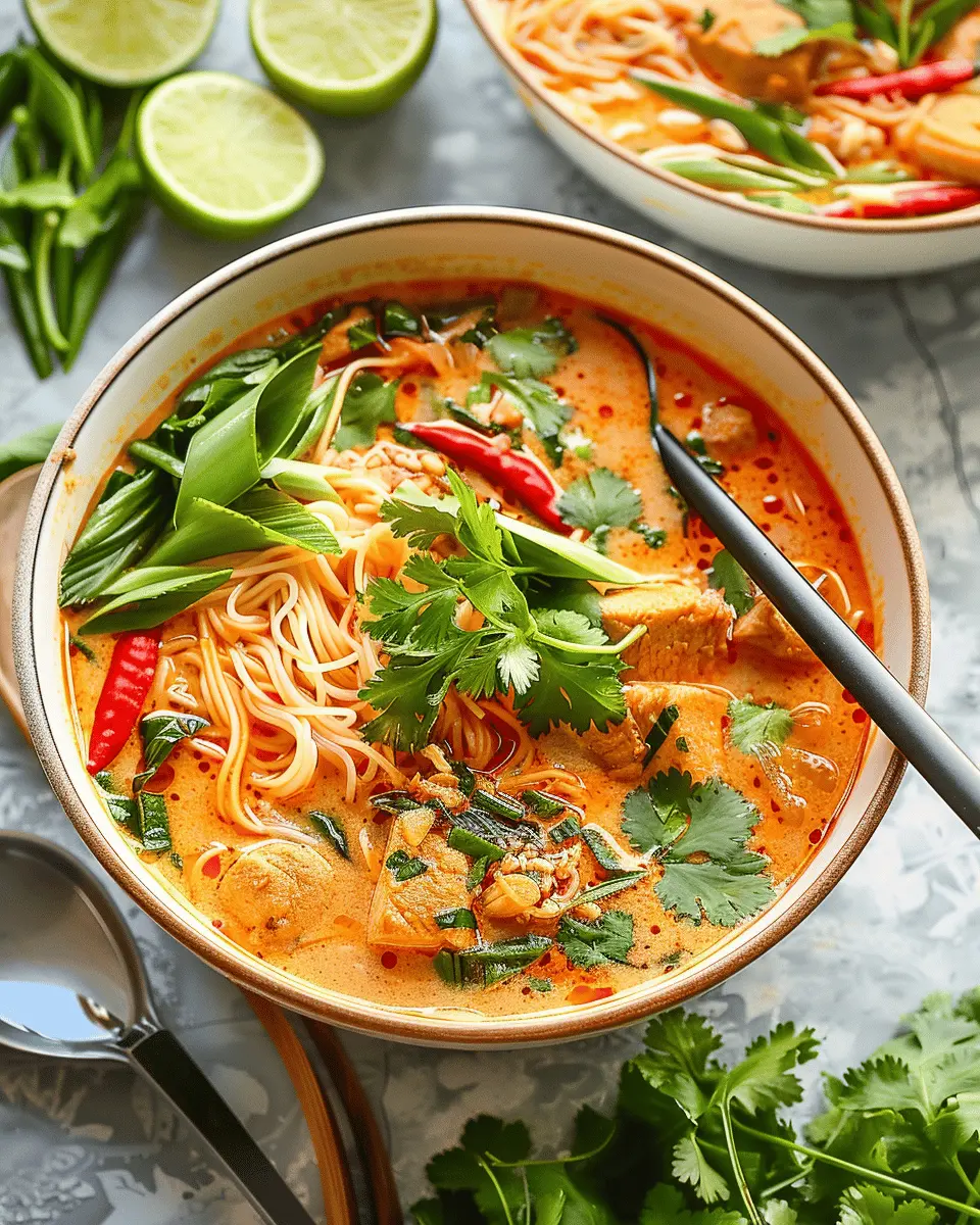 A delightful Thai Red Curry Noodle Soup that is easy to make at home, offering a comforting experience with every bowl.