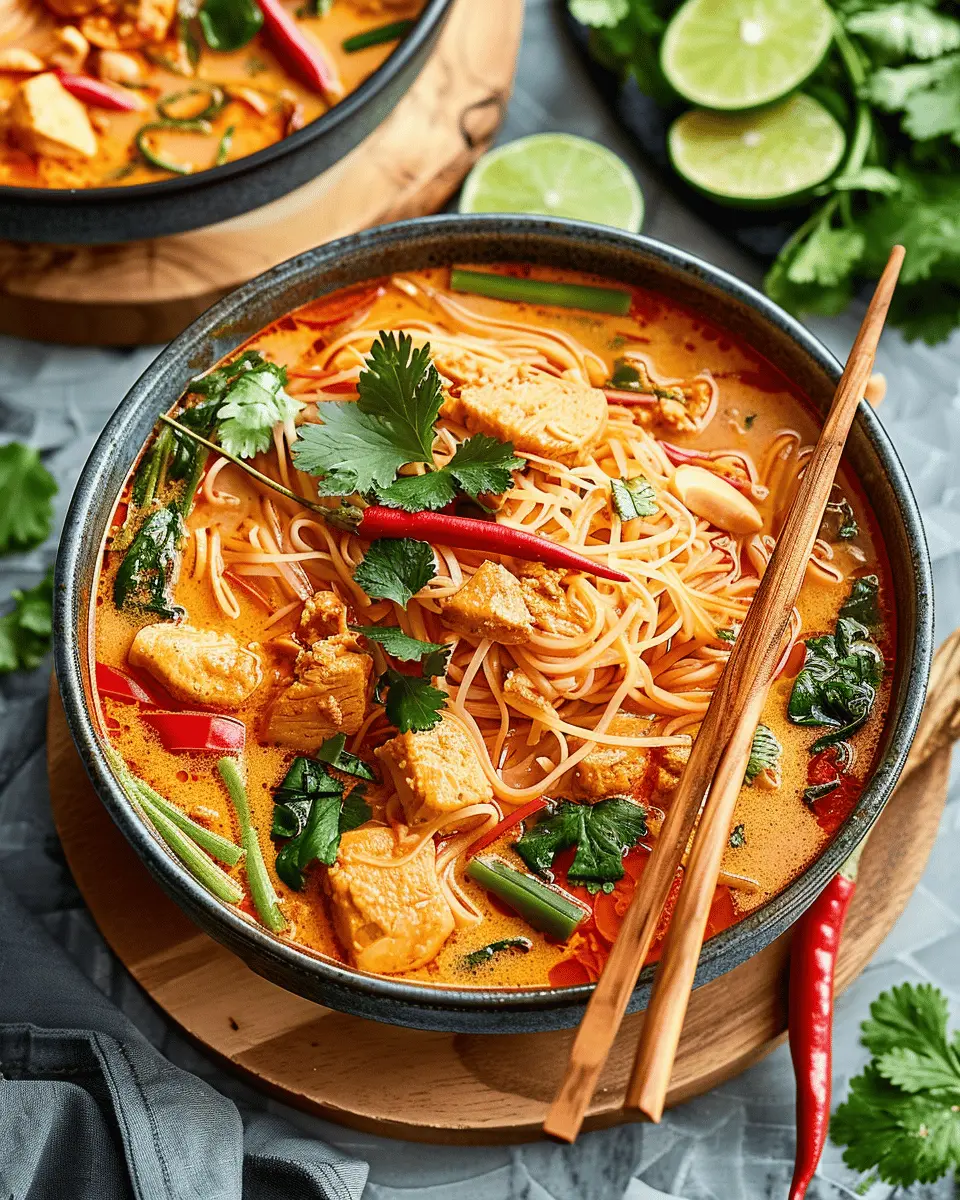 A delightful and simple Thai red curry noodle soup recipe that is perfect for a comforting meal.
