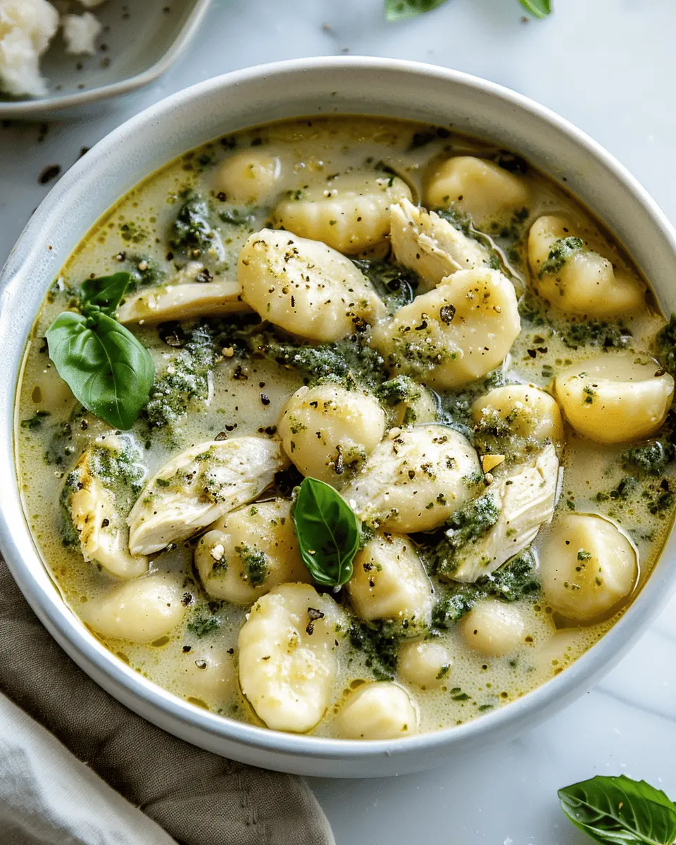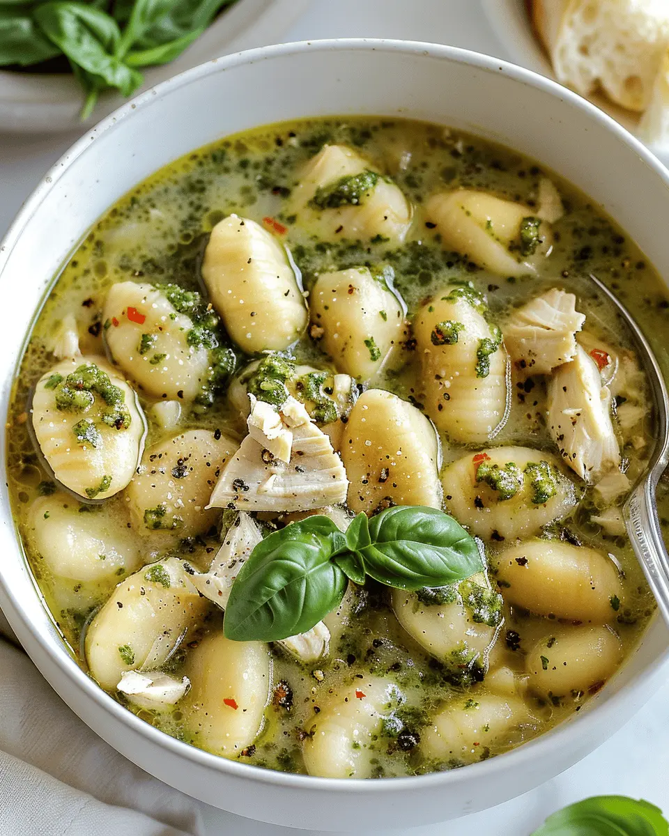 This Chicken Pesto Gnocchi Soup is a comforting and delicious meal that combines tender chicken, flavorful pesto, and soft gnocchi. Perfect for chilly days!