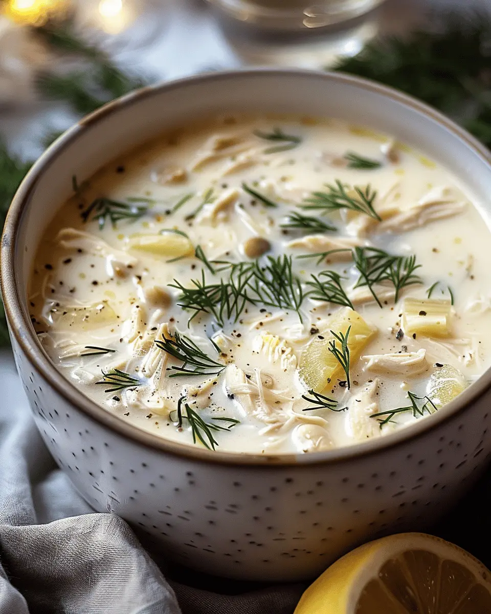 After the chicken is tender, remove it from the pot to cool a bit while you prepare for the finishing touch. In a small bowl, whisk together the eggs and lemon juice. Slowly ladle a few spoonfuls of the hot broth into this mixture—this step is crucial as it prevents the eggs from scrambling. Once you’ve tempered the eggs, stir this mixture back into the soup.