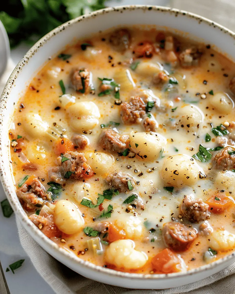 PrintEasy Soup Recipes: Indulgent Creamy Italian Sausage Gnocchi Soup