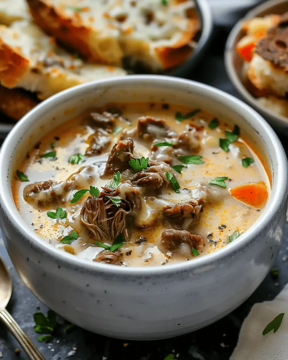 Ultimately, easy soup recipes aren’t just about nutrition; they’re about connection. Gather around a table with friends or family, serve up a comforting soup, and share stories, laughter, and love. As you dive into the following Philly Cheese Steak Soup Recipe, you’ll discover yet another layer of comfort in a bowl. Happy cooking!