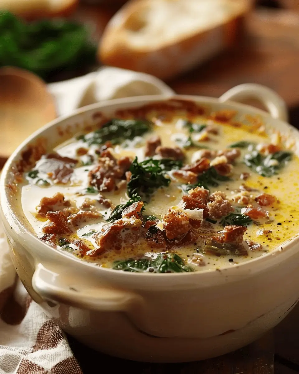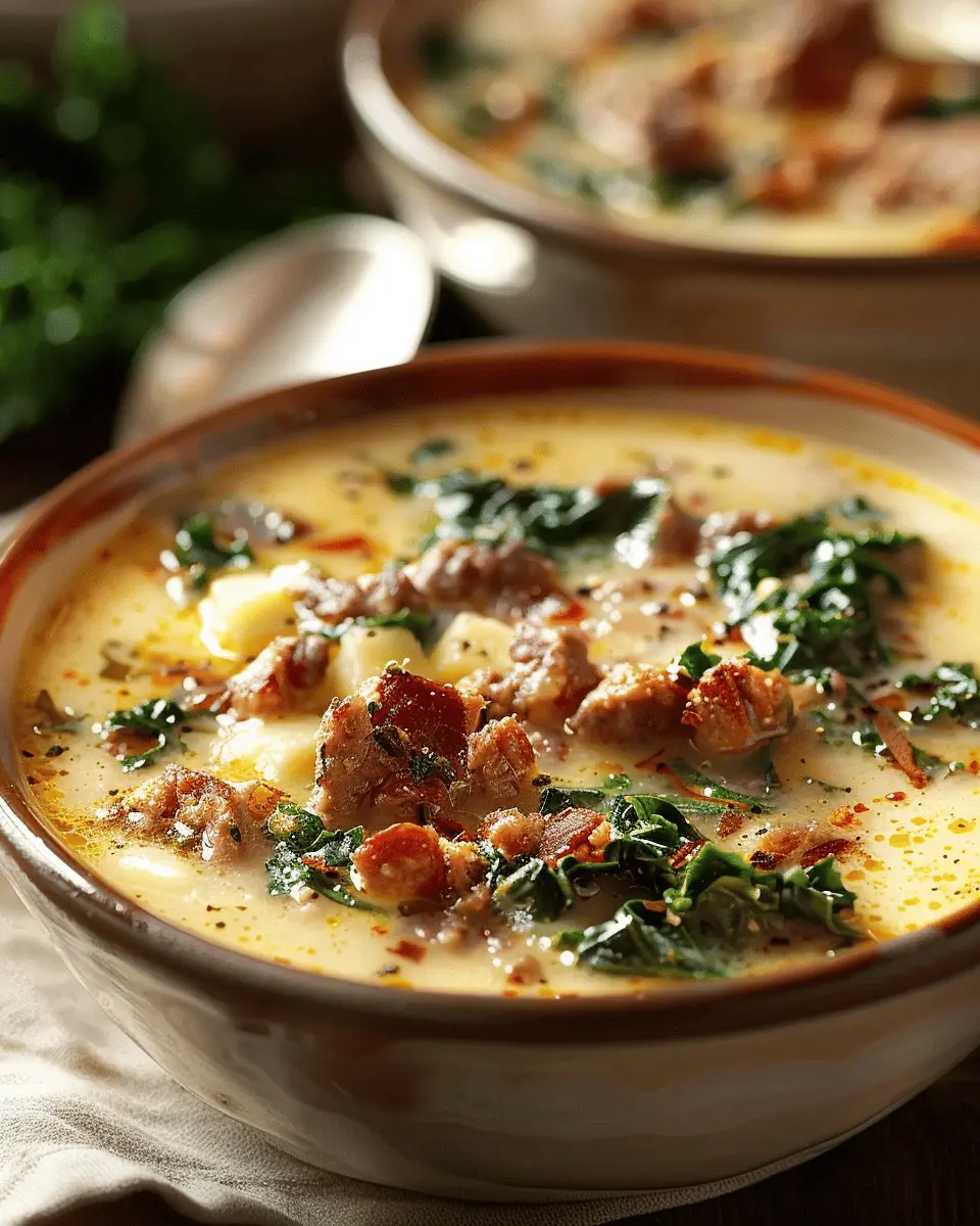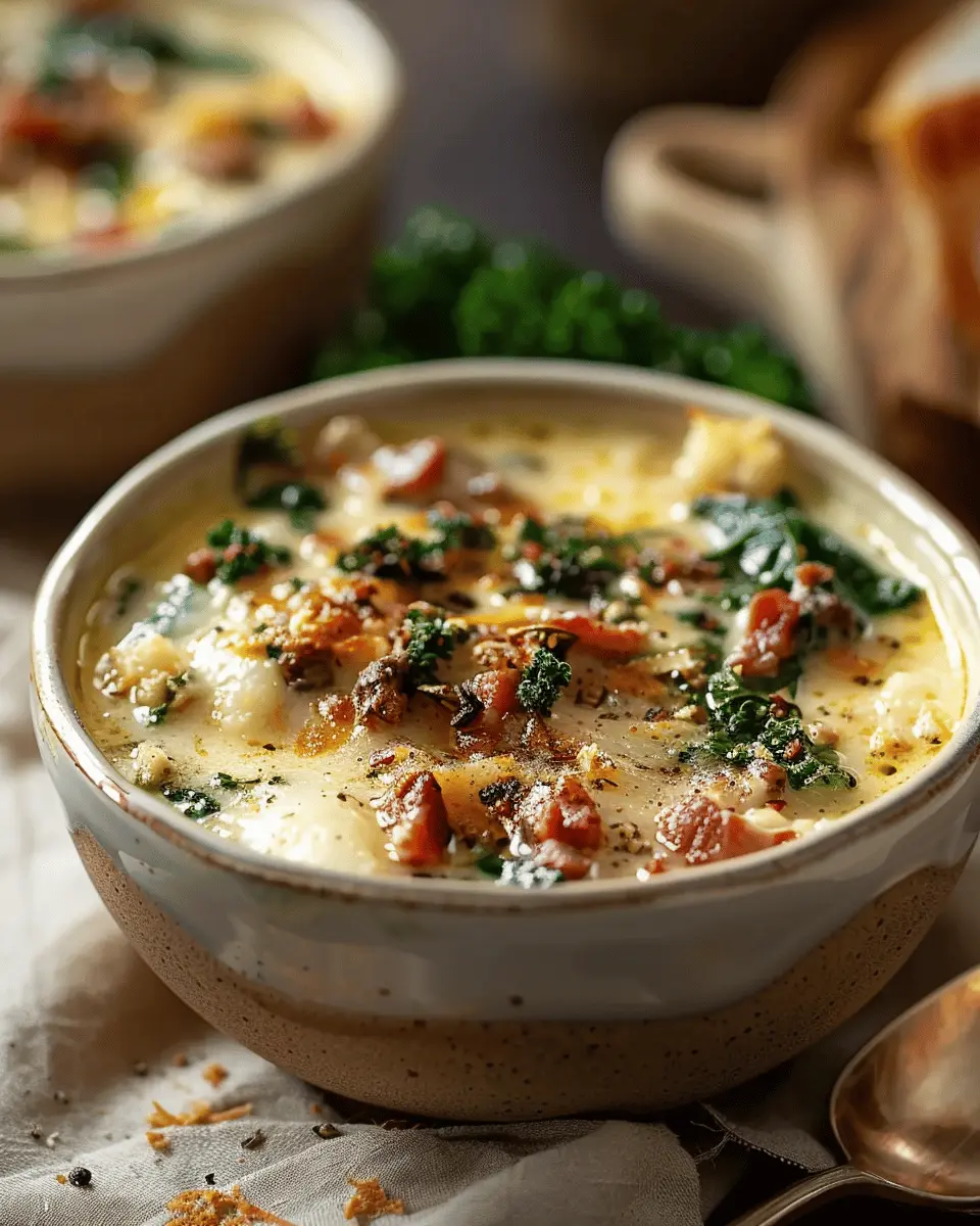 Ladle your finished soup into bowls, perhaps garnishing with a bit of parmesan cheese for that home-cooked touch. And there you have it—an easy, hearty Zuppa Toscana that embodies the warmth of Italian comfort food. Perfect for a weeknight dinner or impressing guests!