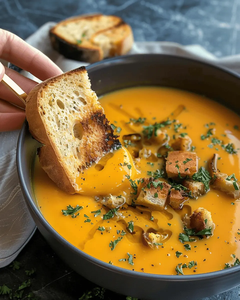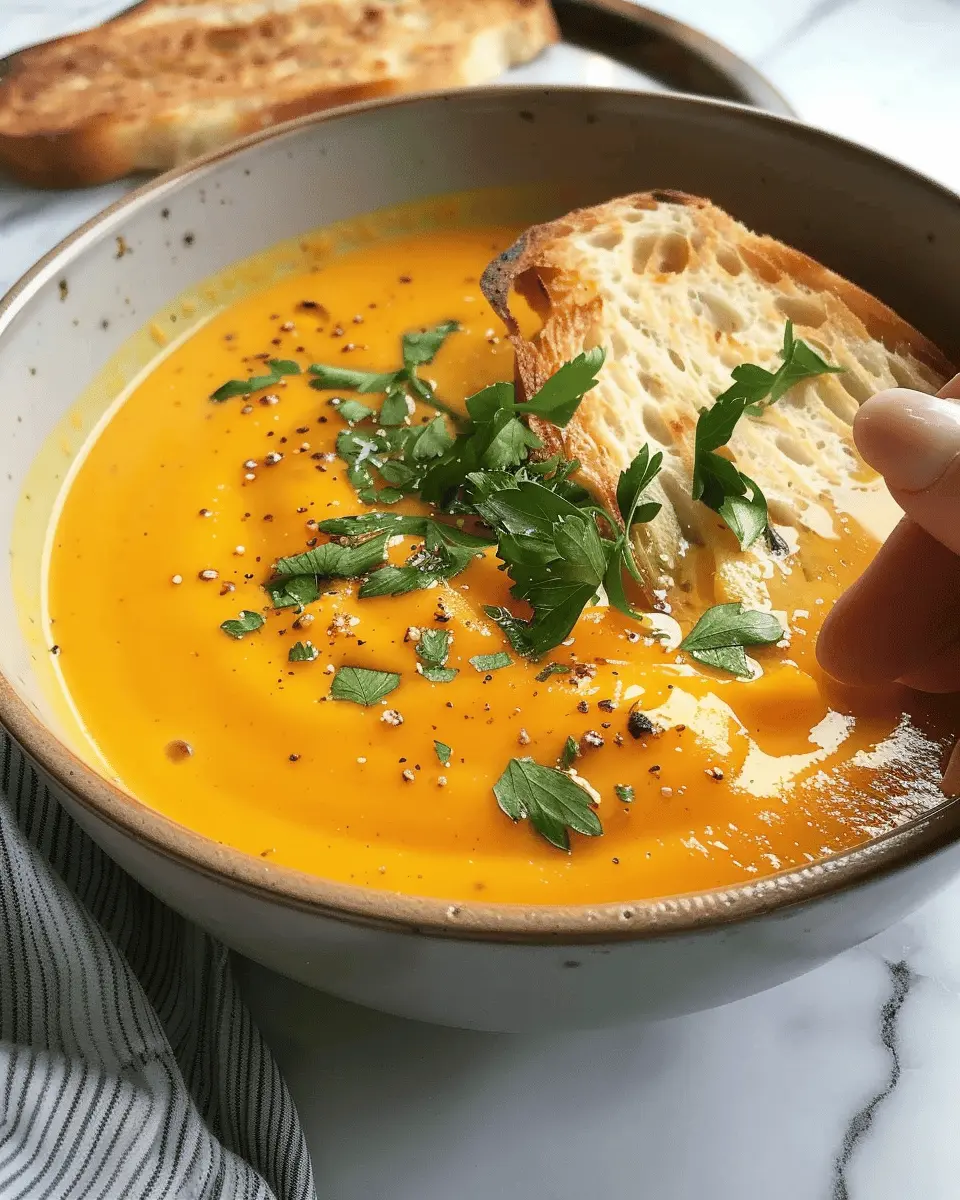 Once it’s ready, it’s time to blend! You can use an immersion blender for convenience or transfer the soup in batches to a traditional blender. Blend until smooth and creamy; this will create a velvety texture that’s perfect for a cozy dinner.
