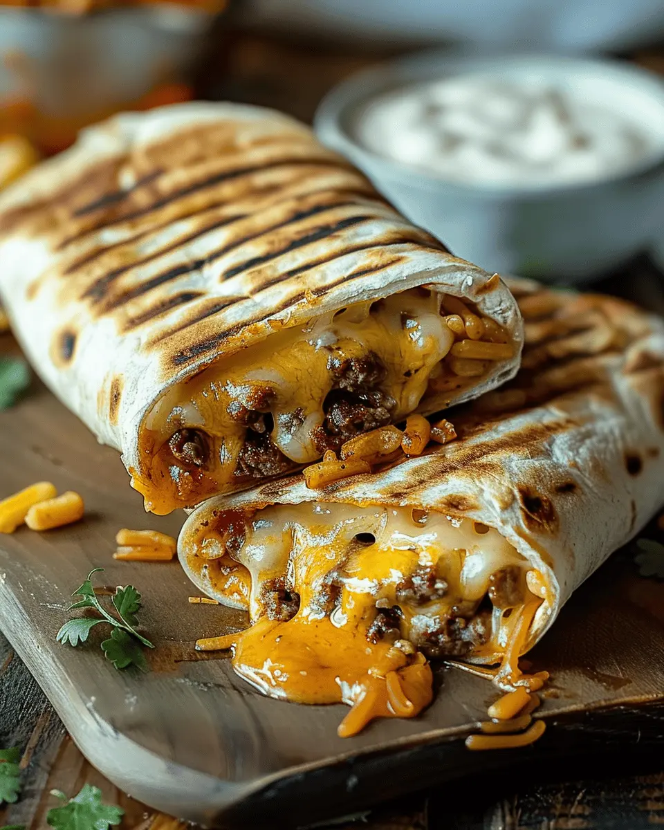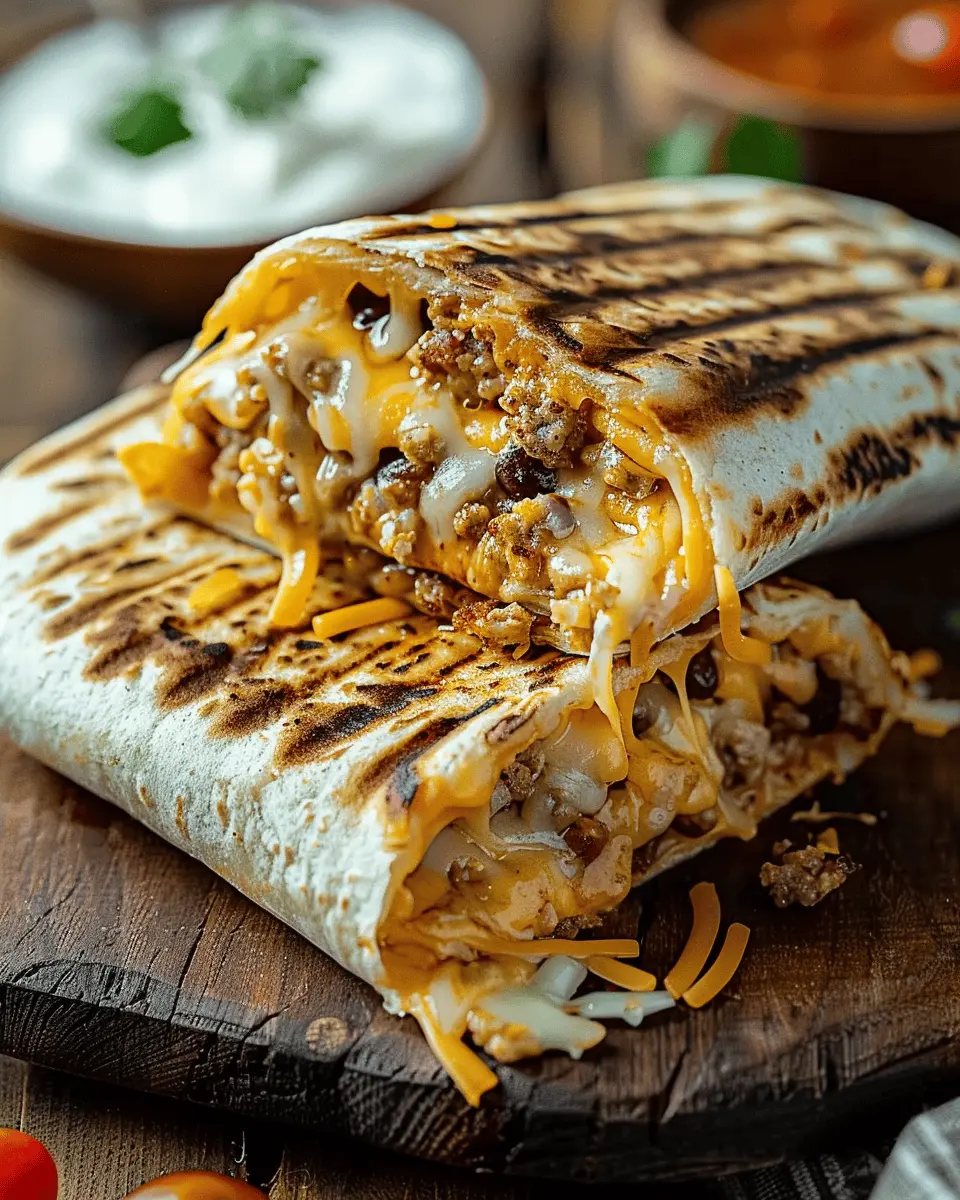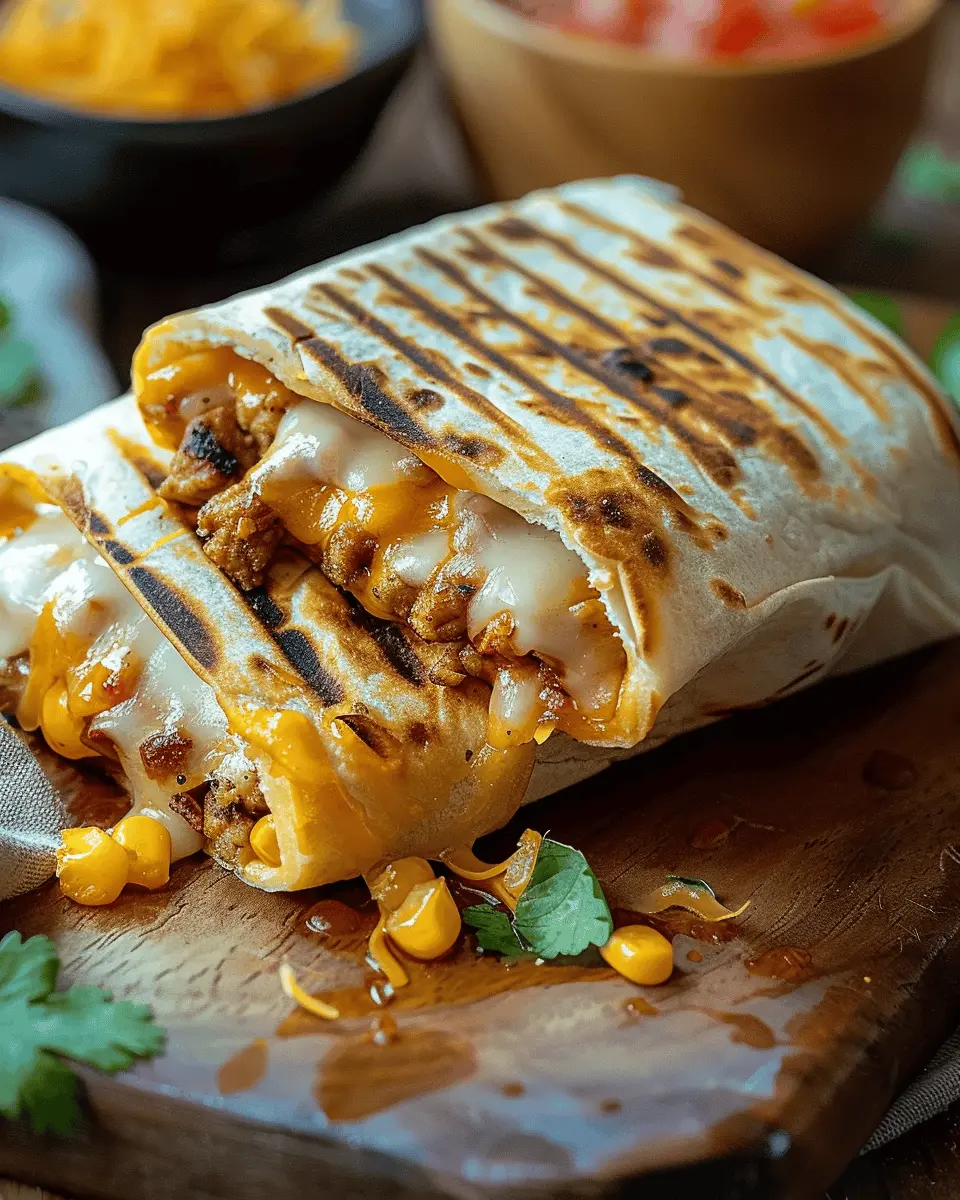 Elevating the presentation of your Easy Grilled Cheese Burrito can make all the difference. A simple but effective method is to slice the burrito diagonally and fan the pieces out on a rustic wooden board. You can add a small bowl of salsa or guacamole on the side for dipping, infusing pops of color and flavor. For a fun twist, sprinkle chopped fresh cilantro or jalapeños over the top for an extra kick.