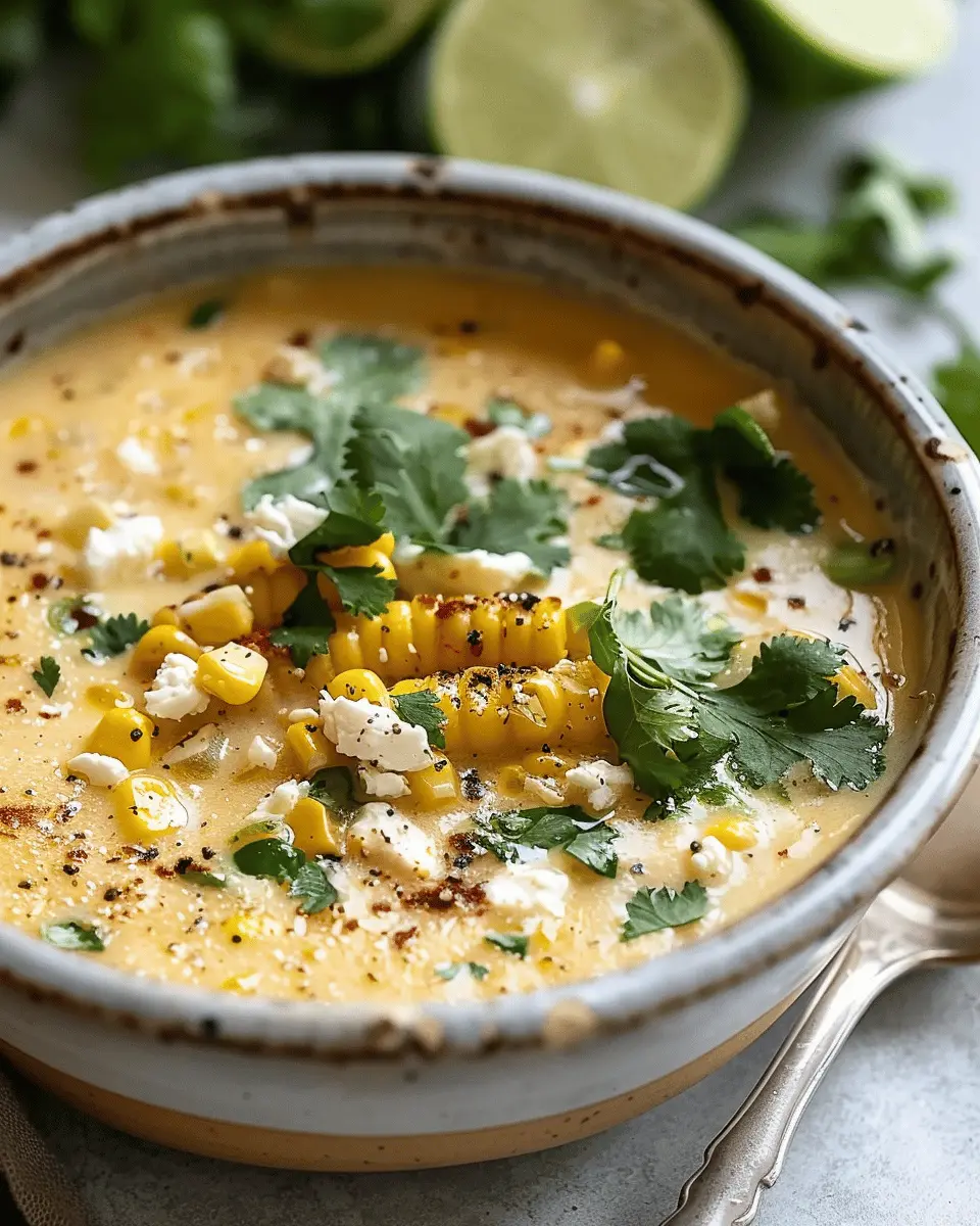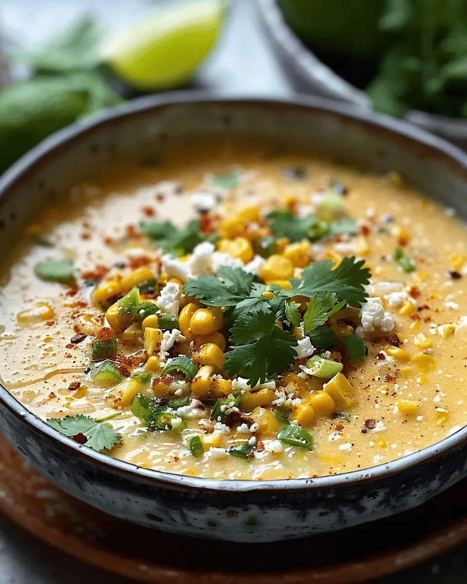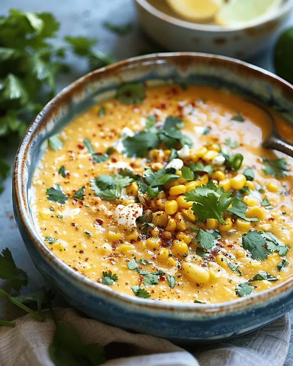 Enjoy a bowl of this creamy and flavorful Mexican street corn soup, perfect for a summer meal.
