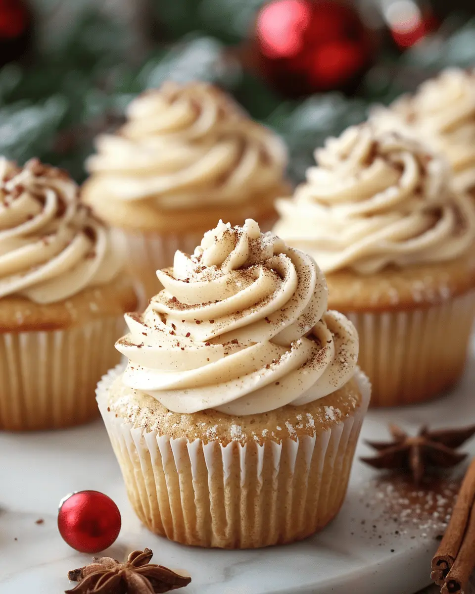 Experience the festive flavors of the season with these Eggnog Cupcakes, perfect for holiday gatherings and celebrations.