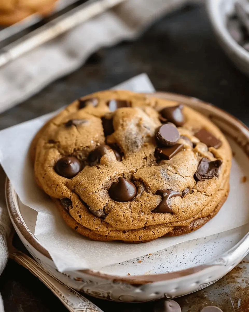 Once baked, allow the cookies to cool on the sheet for a few minutes before transferring them to a wire rack. It’s best to enjoy them warm, with the chocolate chips still gooey and melty.