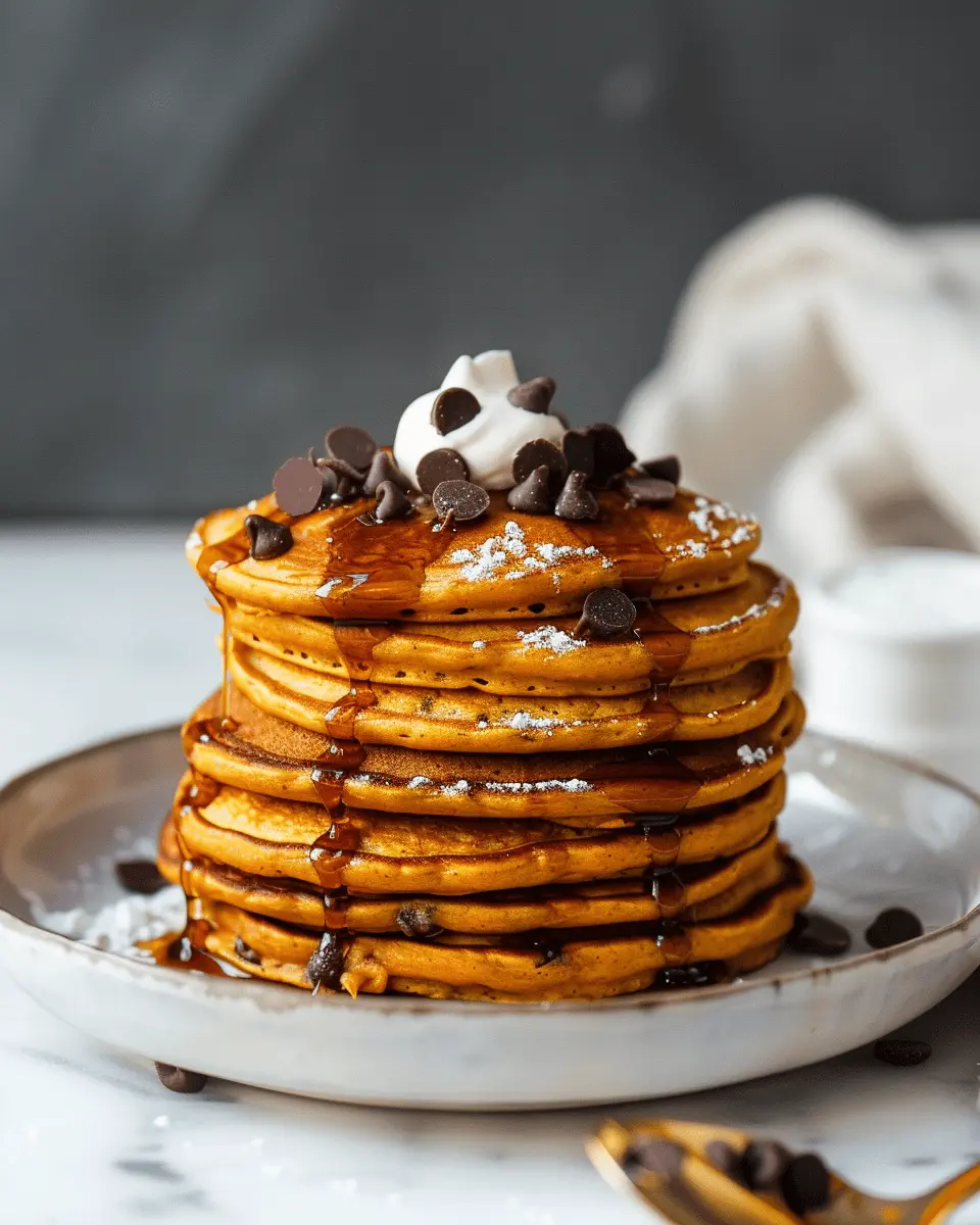 These Fall Pumpkin Chocolate Chip Pancakes are a delightful treat, combining the rich flavors of pumpkin and chocolate in a fluffy pancake.