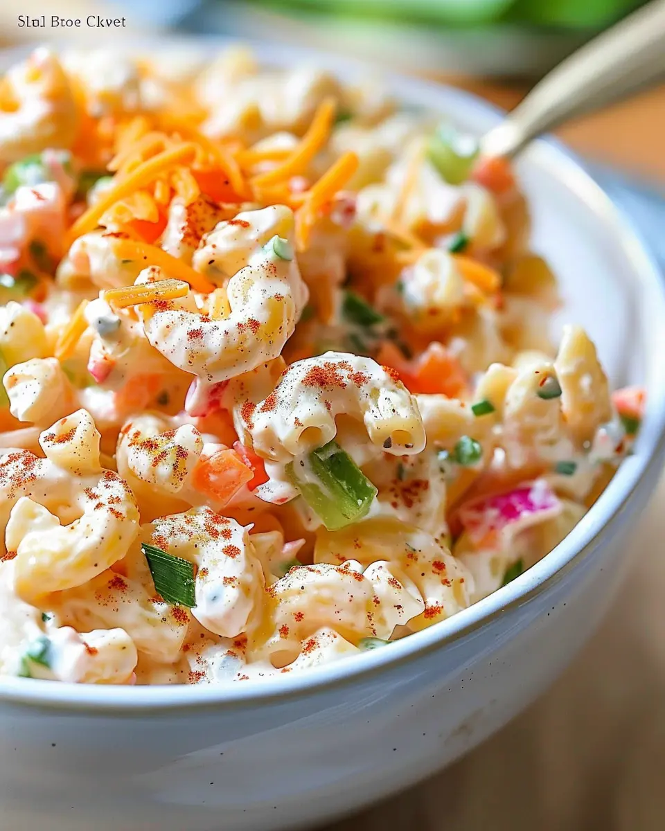 - Customizable: With the base of macaroni and the creamy dressing, you can easily swap or add ingredients to suit your taste. Love crunch? Toss in some diced bell peppers or green onions.