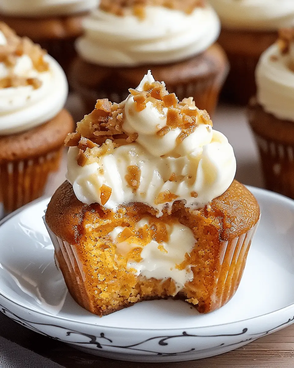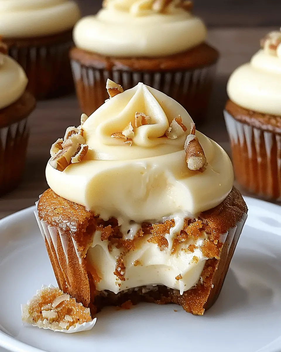 Delight in the perfect mix of carrot cake and creamy cheesecake with these irresistible cupcakes. A treat that will impress at any occasion!
