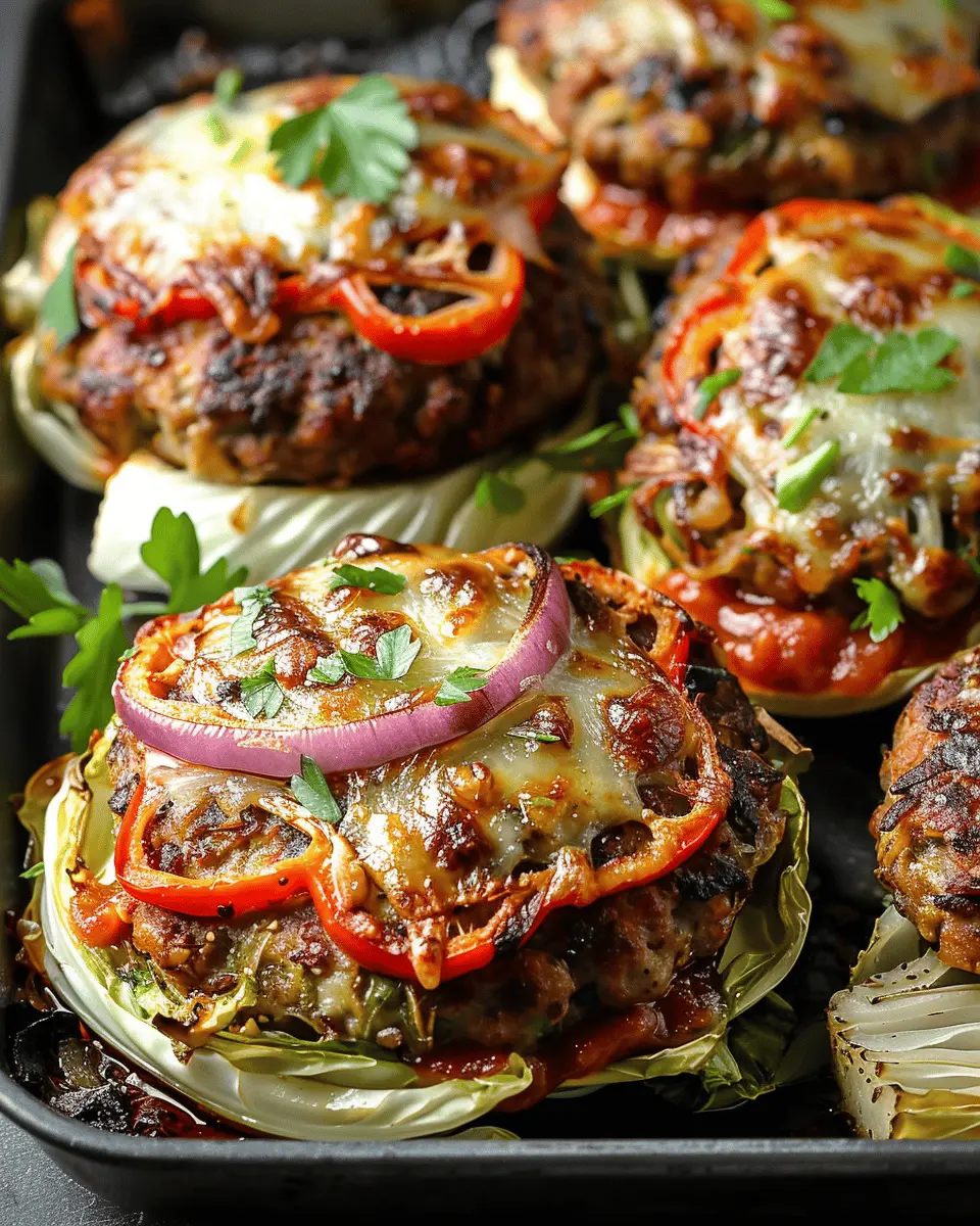 PrintLow Carb Recipes: Delicious Oven-Baked Cabbage Burgers with Turkey Bacon
