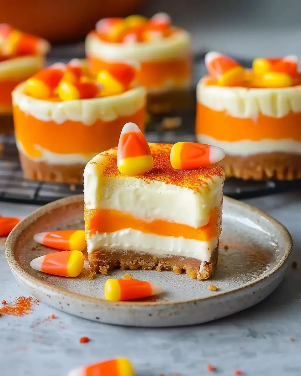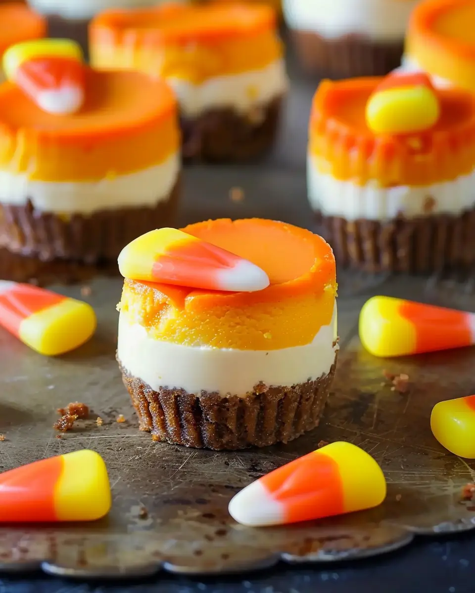 Pumpkin Spice Mini Candy Corn Cheesecakes