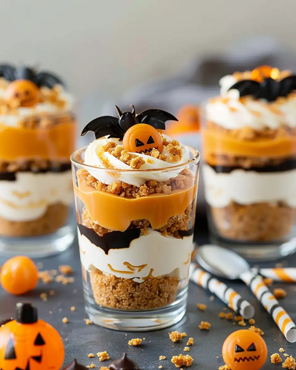 Serving suggestions for No-Bake Halloween Cheesecake Parfaits