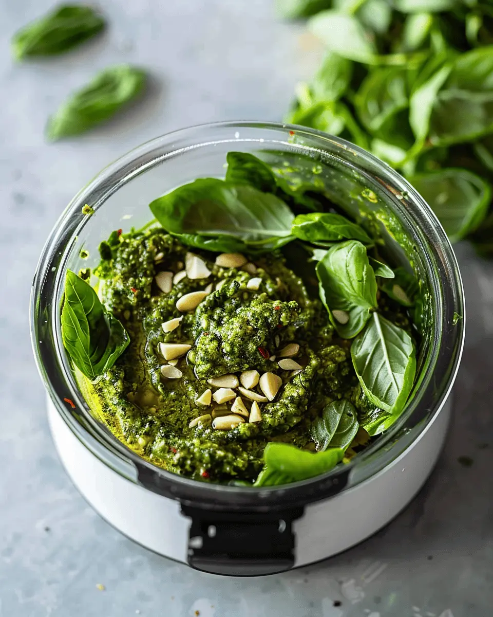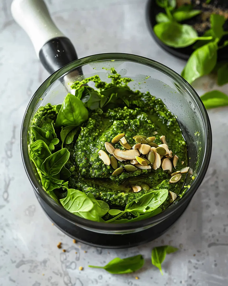 At this stage, you’ll notice the vibrant green color of the basil, which really sets the mood for this cooking adventure. For a bit more flavor, consider adding other herbs like parsley or arugula, but keep the balance in mind. After all, we want that classic pesto flavor, even sans nuts!