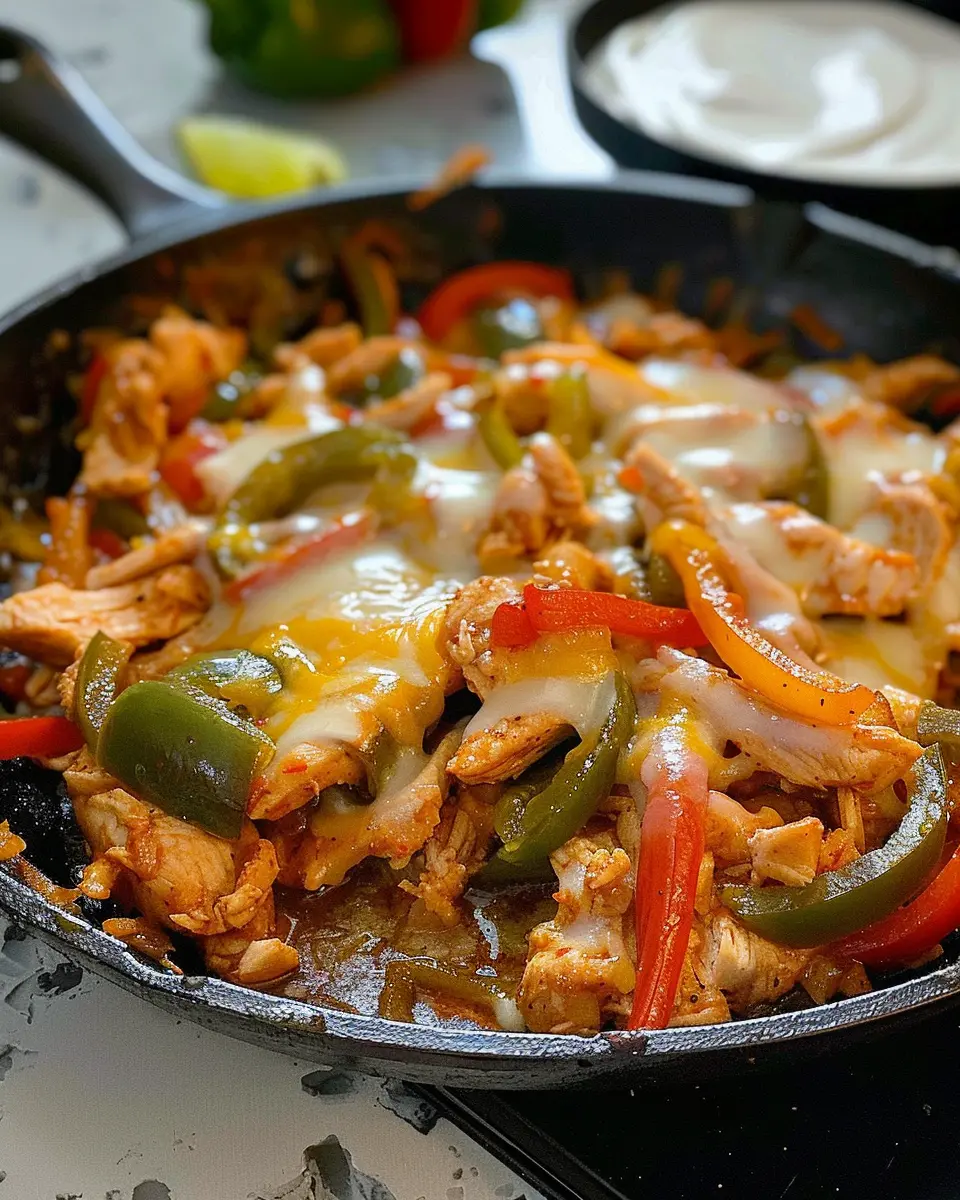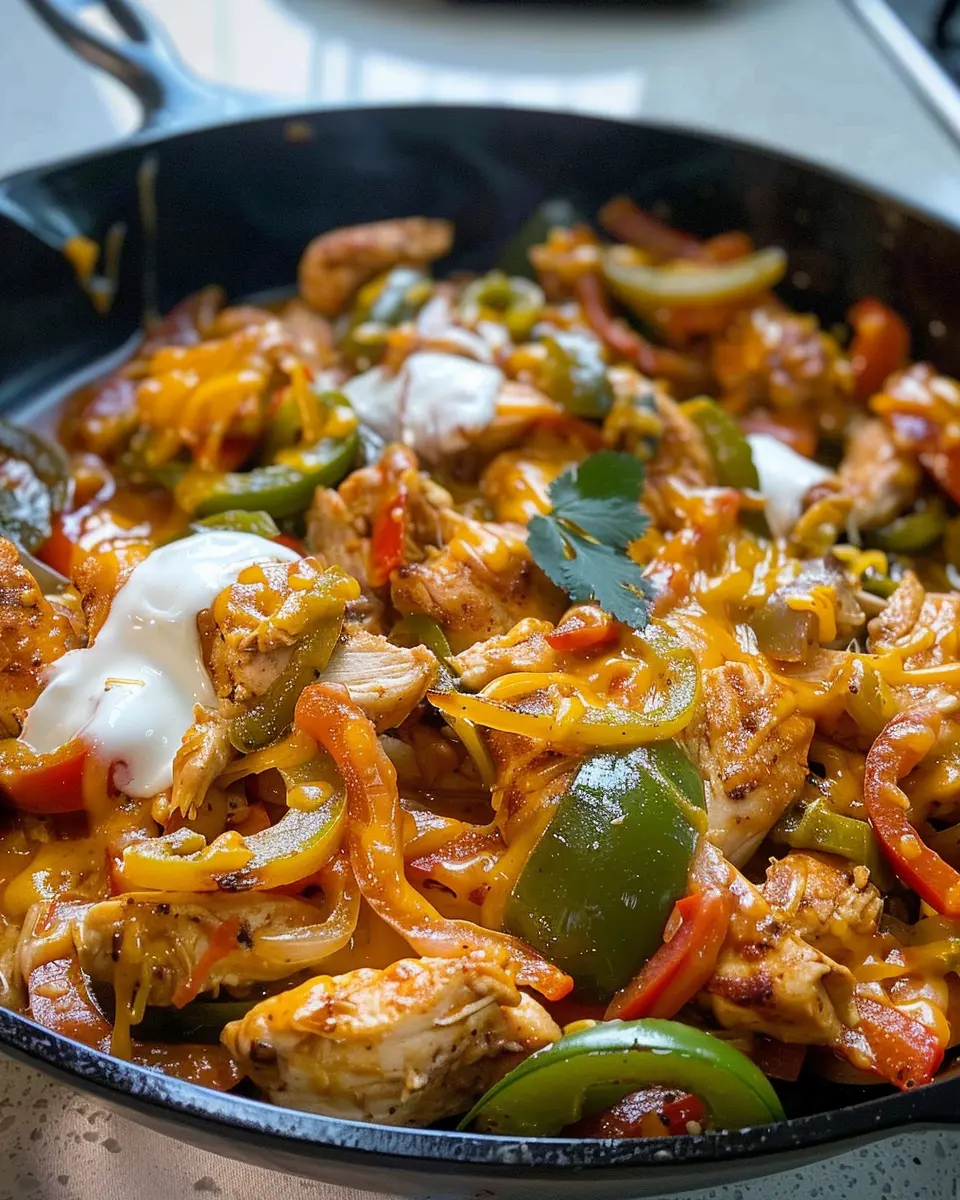 PrintQueso Chicken Fajita Skillet: A Juicy, Flavorful Family Favorite