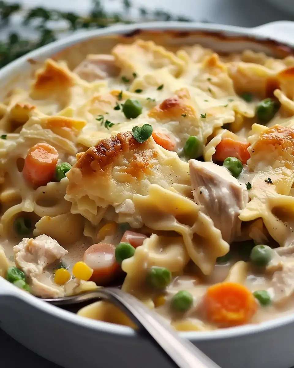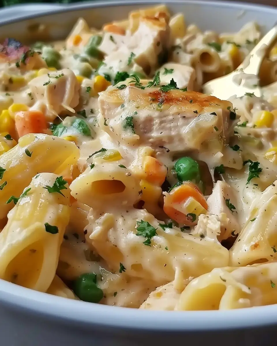 An easy and comforting Chicken Pot Pie Pasta that brings the classic flavors of chicken pot pie into a quick and delicious meal.