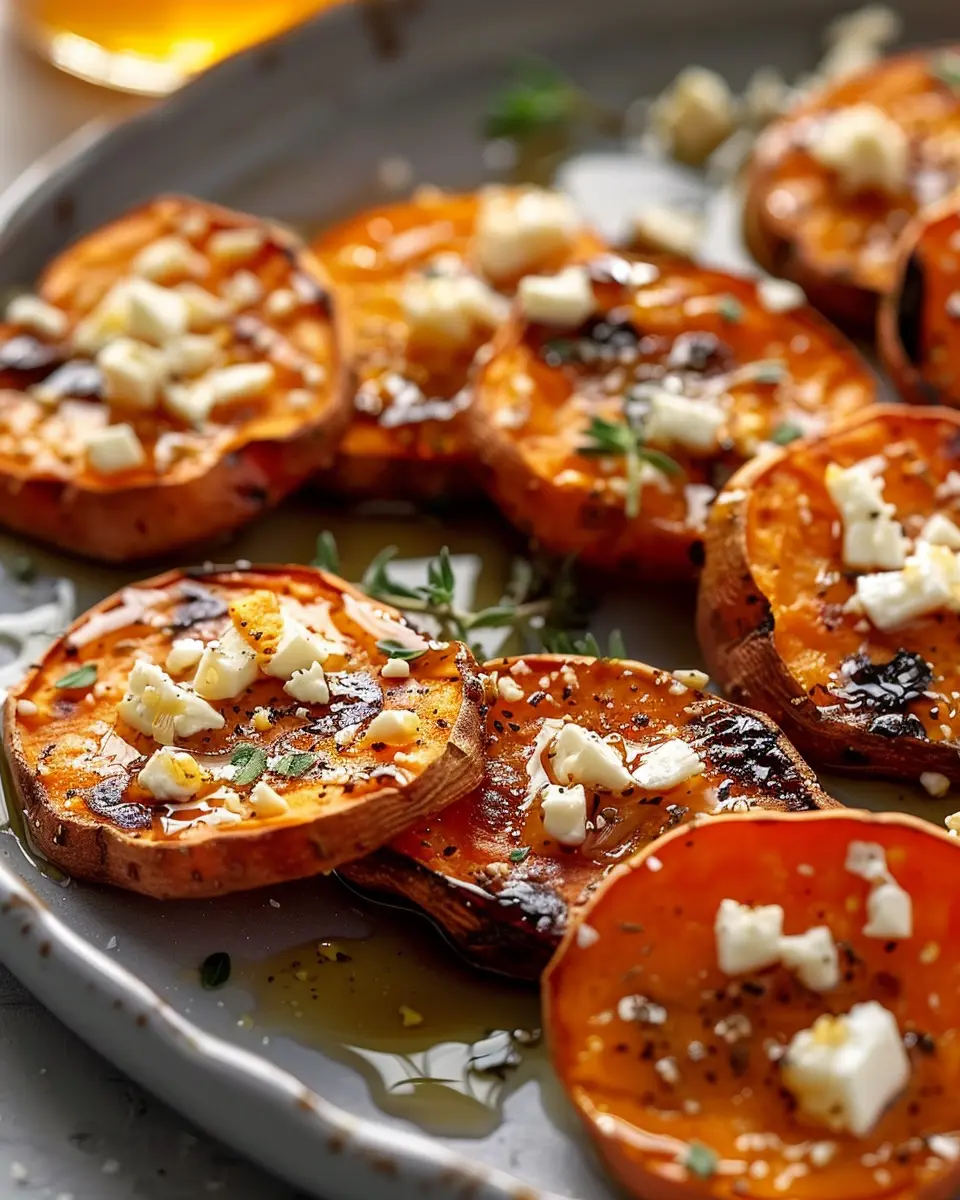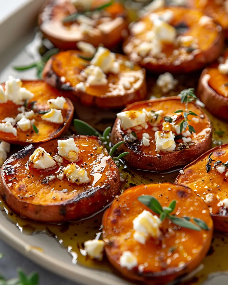 PrintRoasted Sweet Potato Rounds: Easy Delight with Honey & Feta